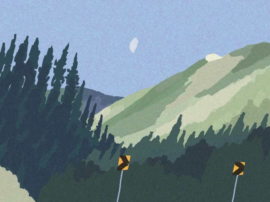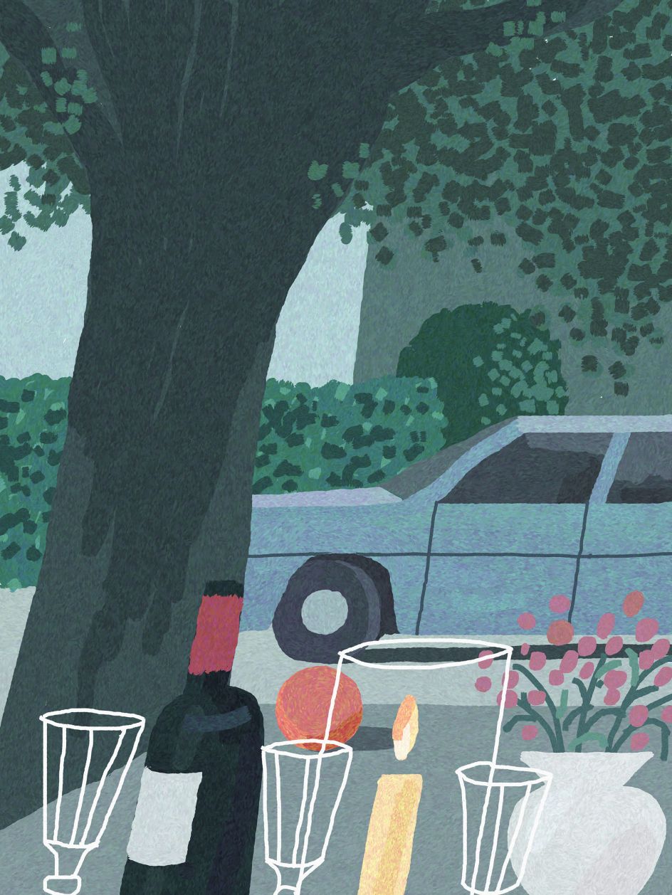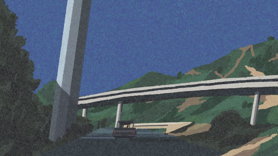 Nature in all its forms features prominently in Julie's work, whether that's flowers in a tabletop still life, the landscape looming around a motorway, or a starry sky framing a diner. This focus comes as something of a surprise to Julie, though, and she has David Hockney to thank for it. "I used to think nature was so boring to draw, but he proved me wrong."