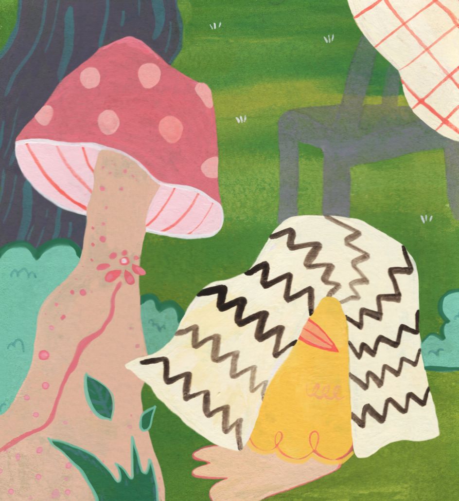 "I think my illustration style reflects magnificent boredom and confusing contentment," as Kat says. "I draw constantly, and funny characters seem to come out without any premeditation. When I’m making a final version I sketch multiple concepts then paint each piece in gouache, focusing on the feel of it, and scan them to create even greater textures. I still prefer to work mostly traditionally, though, and love the feeling of making a mess with paint and other media."