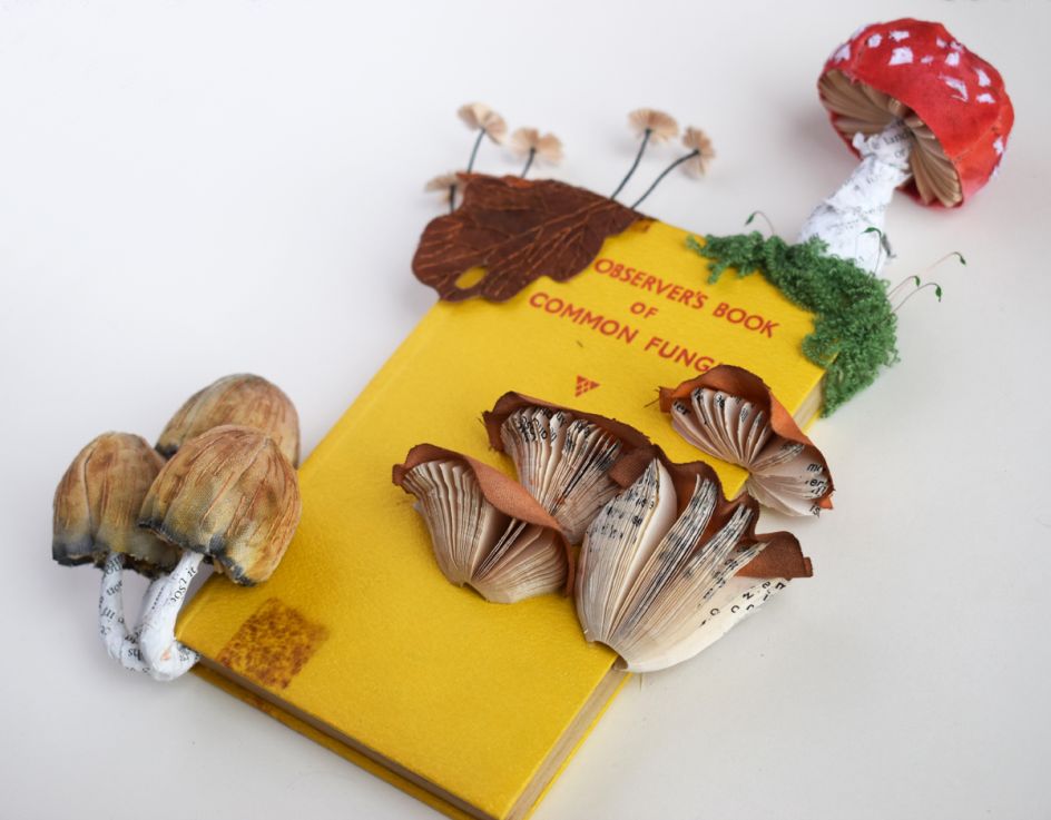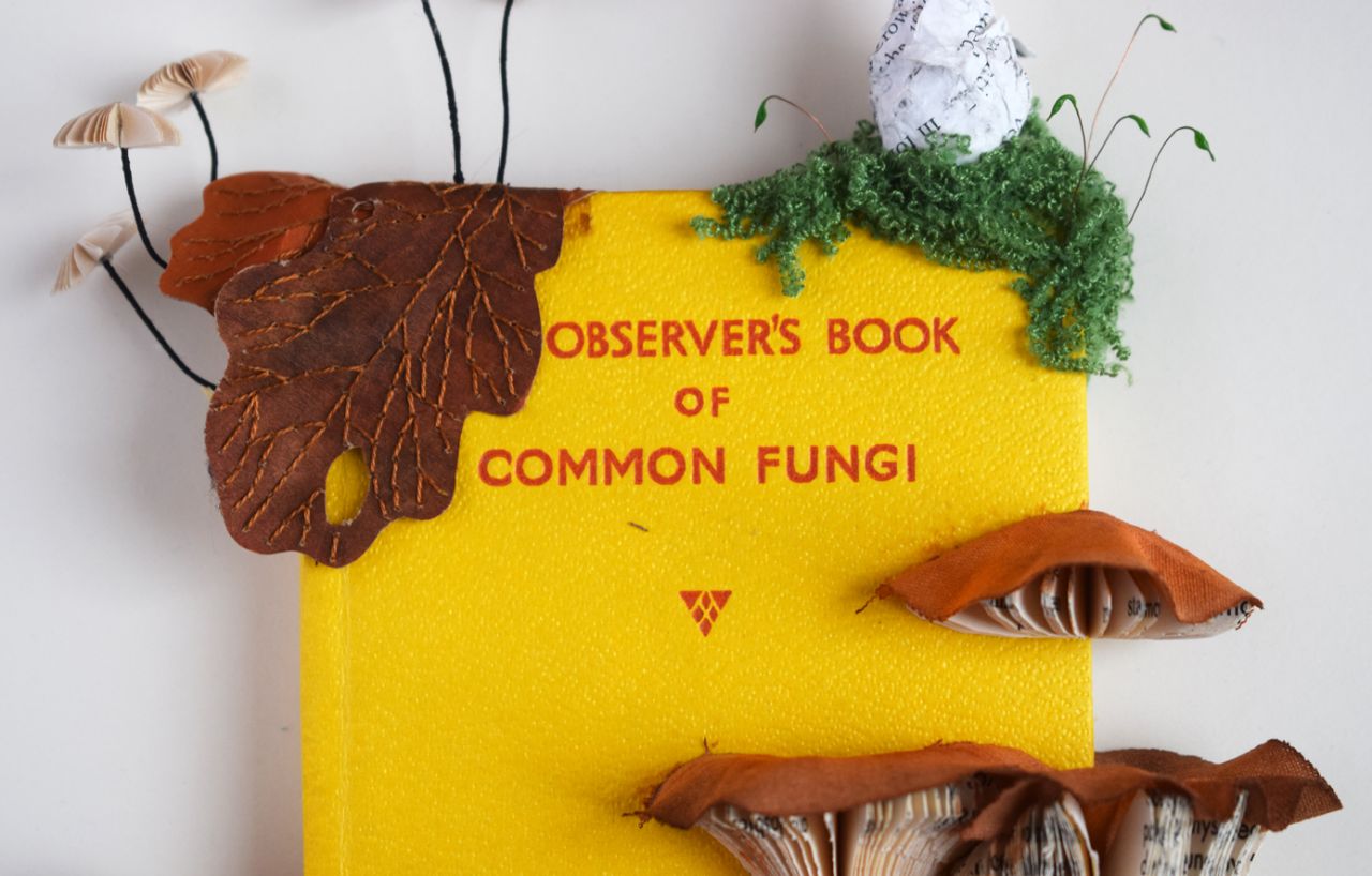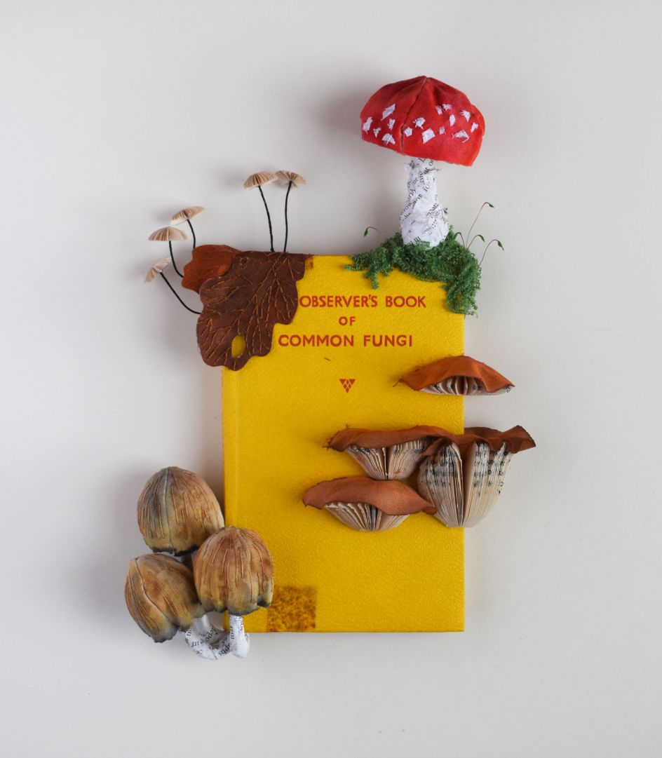 Common Fungi and British Wild Flowers are the first two in a new series by Bristol artist Kate Kato, which explore the idea of nature emerging and taking over old, used objects, creating their own mini worlds. "I started with these books, as I like the idea that the information is growing from the pages, informing people in a completely different way to the original object," she explains.