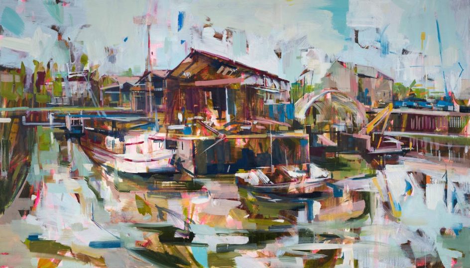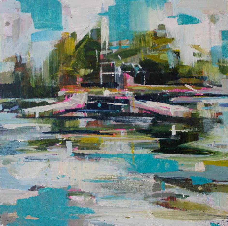 In her solo exhibition at Zimmer Stewart gallery this May, Katharine Le Hardy will showcase new paintings from her Eyots and Aits series. An ait, pronounced like "eight", or eyot, is a small island and it is especially used to refer to islands found on the River Thames and its tributaries in England.