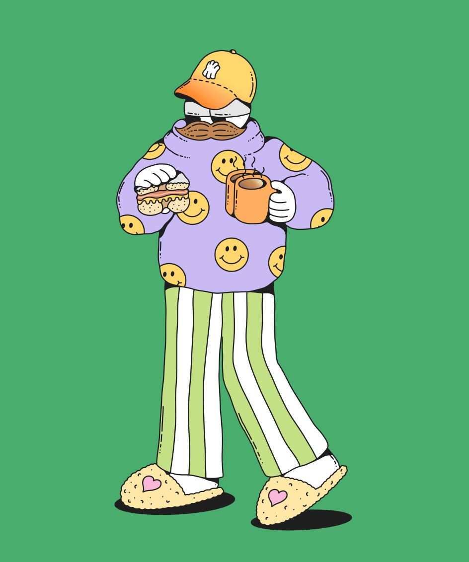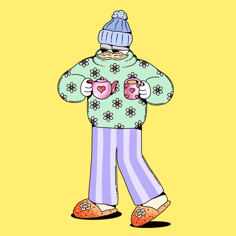 As for the design and colour choices of her characters, these are informed by anything that is inspiring her in the moment. This could be the time of year, current events, her mood, or even random objects. "As autumn approaches, I am gravitating towards warm colour palettes and fuzzy grain textures as they communicate the warmth and comfort of the season," she says.