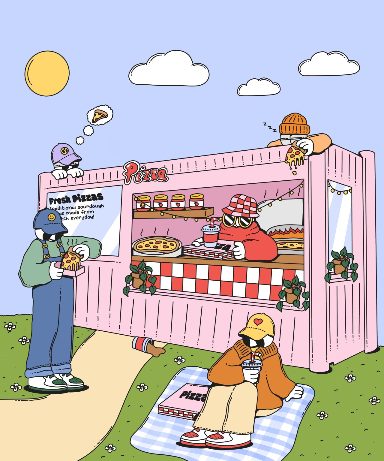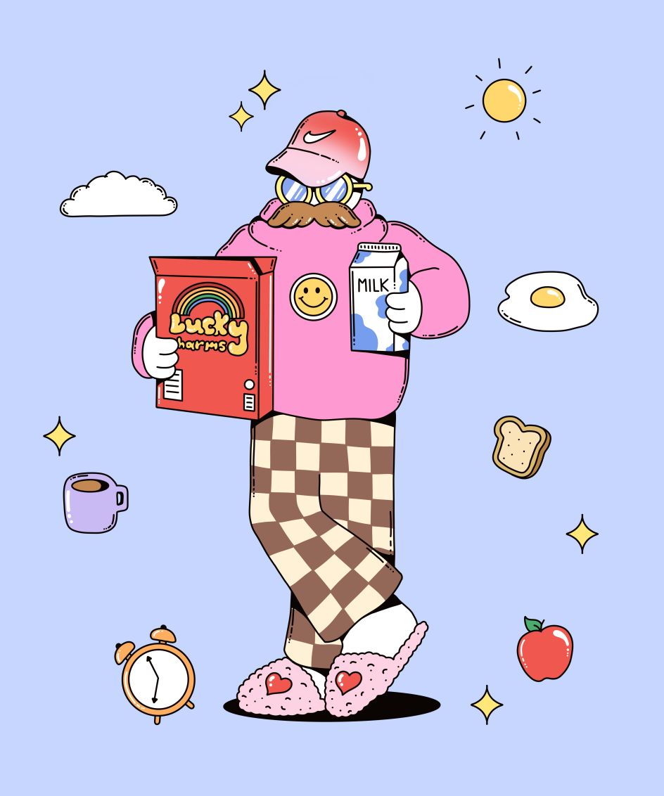 The big googly eyes that define Katie's characters can trace their roots back to old cartoons that she used to enjoy. "I was interested in becoming a cartoonist when I was younger, and so there's a nostalgic feeling behind my work as I watched TV shows like Tom and Jerry, Looney Tunes, and basically all the Disney films! This is where my design choices come from."