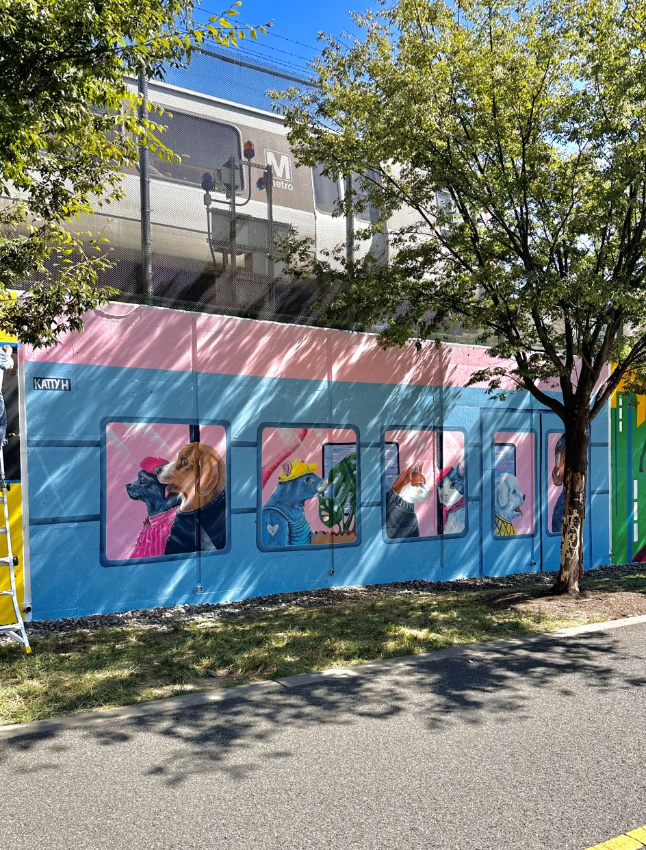 Washington DC-based illustrator and artist Katty Huertas has ticked off her goal to be more involved with the local art community by painting her first ever mural, which depicts a train full of human animals going about their day.