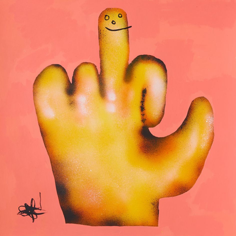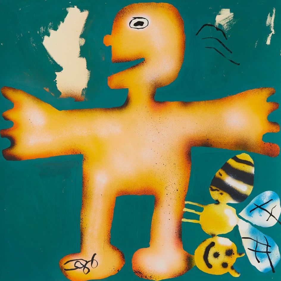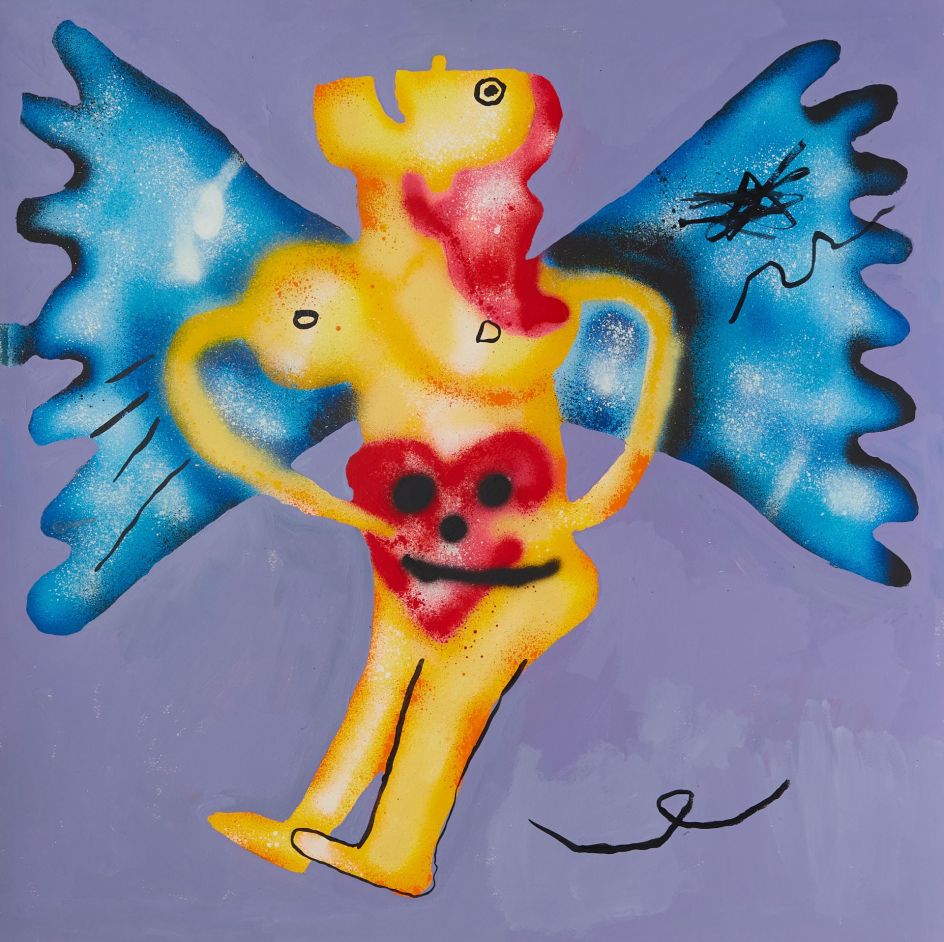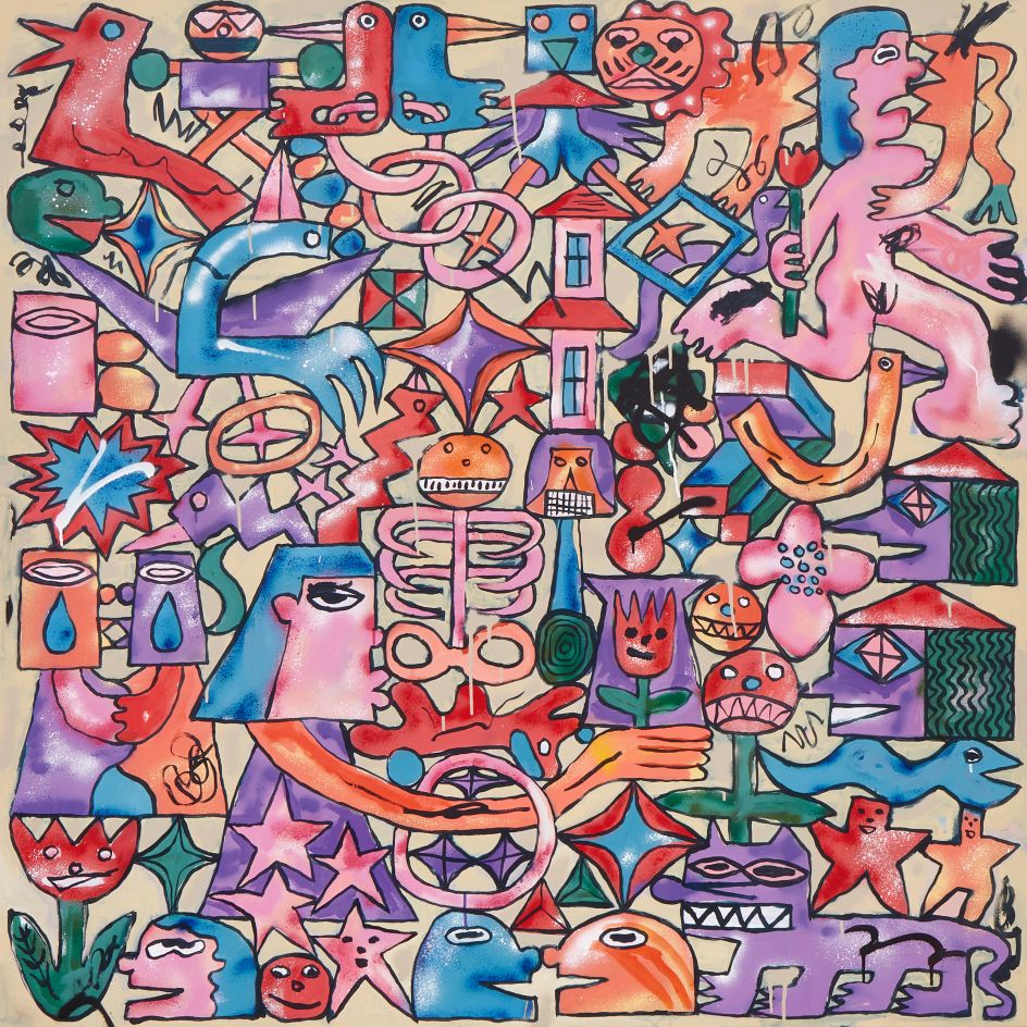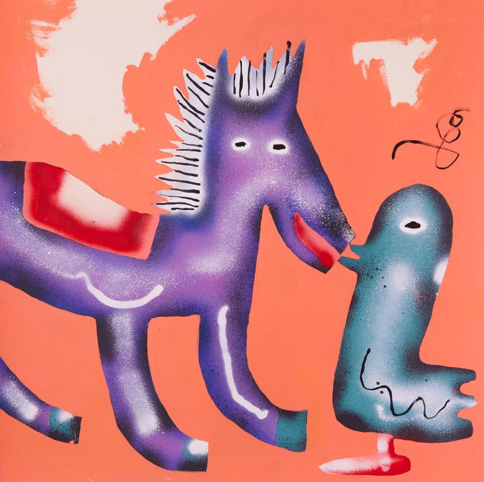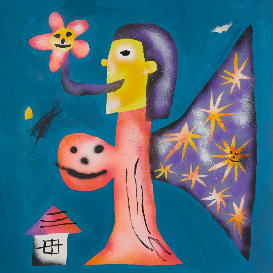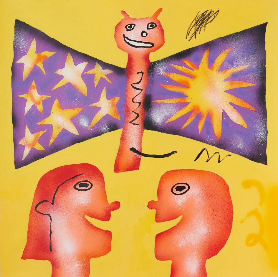 Within his world of bright colours and stylised motifs, his works address the importance of direct eye-to-eye and face-to-face communication, particularly in a digital age where we seem to exchange our thoughts and feelings primarily over the Internet.