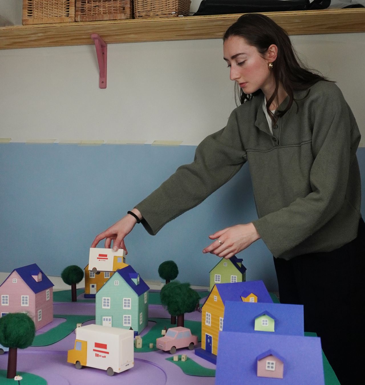 There's something about sifting through a pile of paper to find the perfect colour or sorting through a drawer of material to see what will make the best hill or cloud, which means I can have this immediate connection to a physical scene that I'm building. Having this hands-on approach means it's easy to experiment and I don't feel tied down to one way of making.