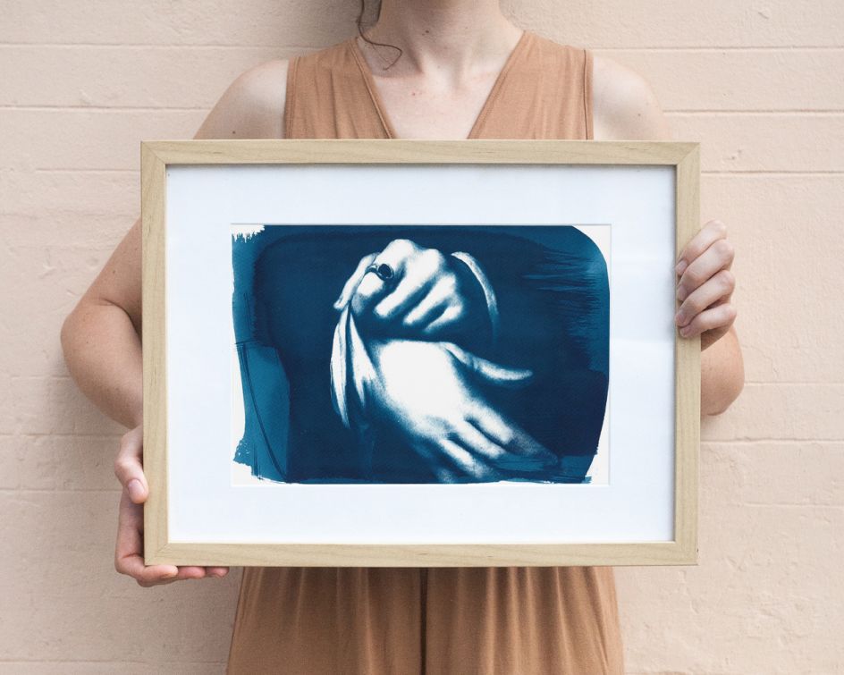The duo explains: "Our cyanotypes are made by coating high-quality watercolour paper with a light-sensitive chemical, to then be exposed in direct sunlight for several minutes using a photo negative to get the best image quality.