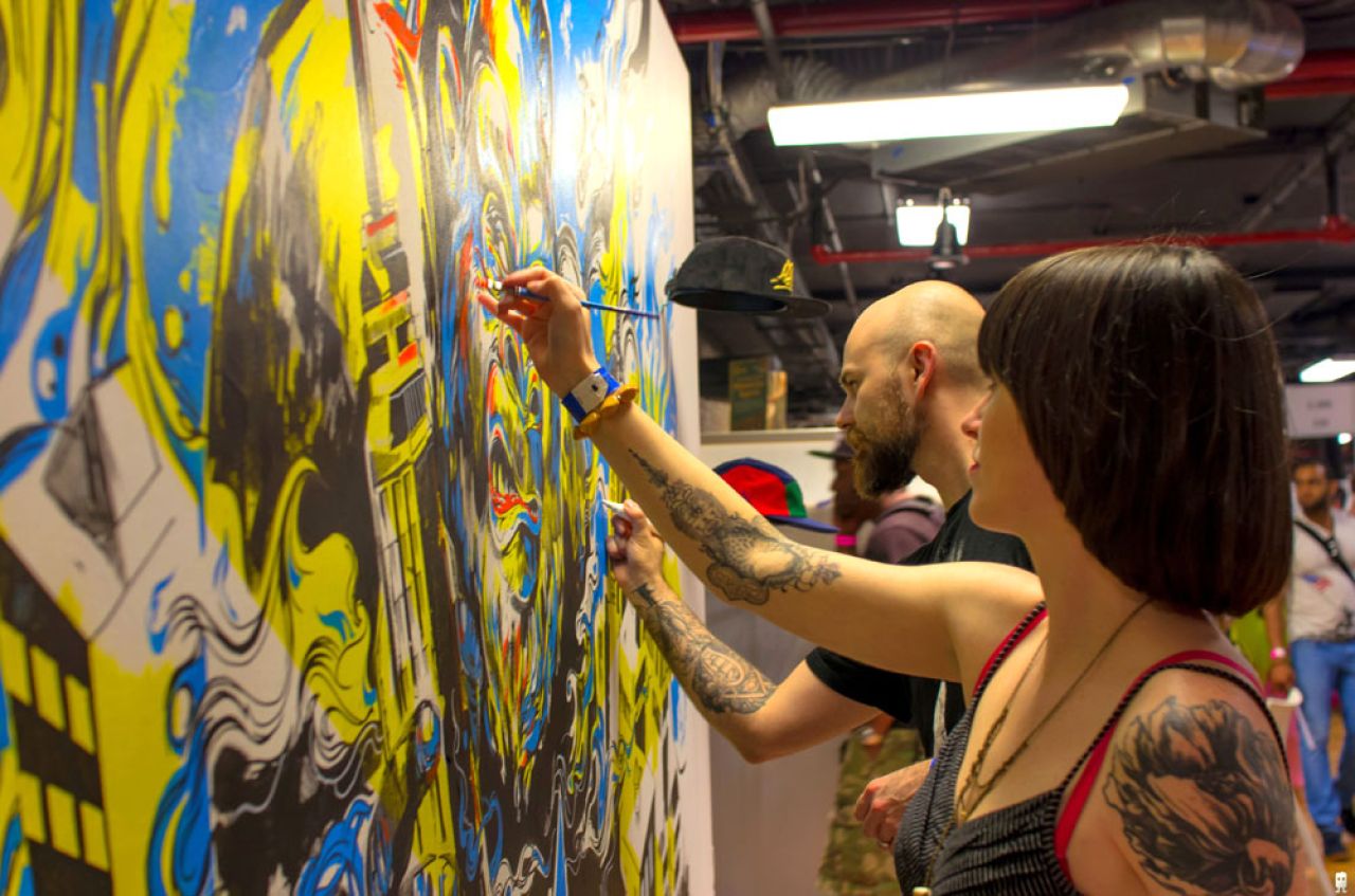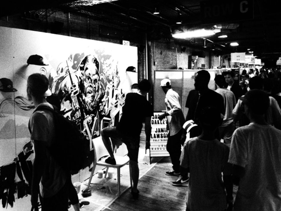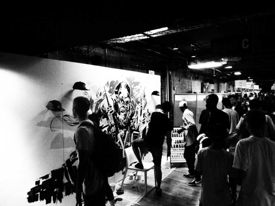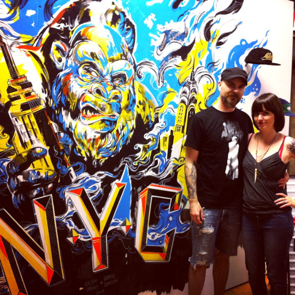 Jacqui Oakley and her husband, Jamie Lawson from Poly Studio were recently flown down to New York by Basecamp and Flexfit to do a mural for the Agenda NYC trade show. It's a forum for street wear lines such as Brixton, Reebok, Herschel and Vans - with a strong emphasis on style, art, music and culture.