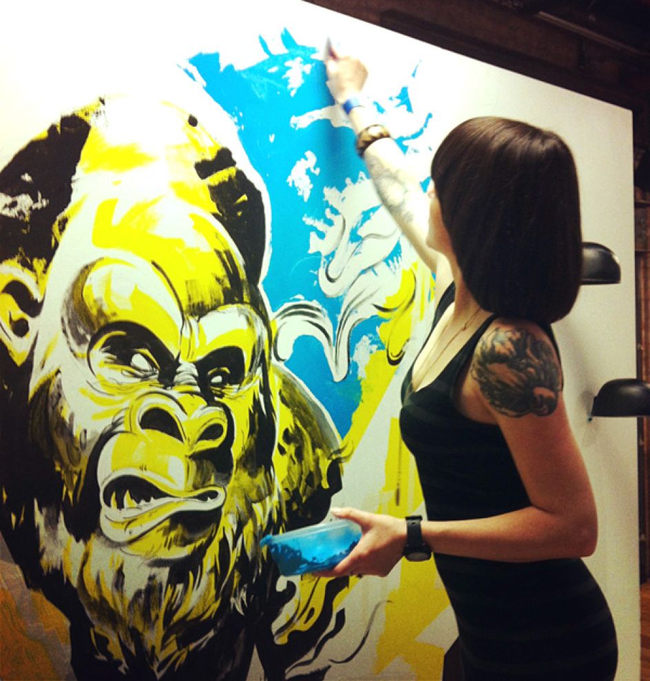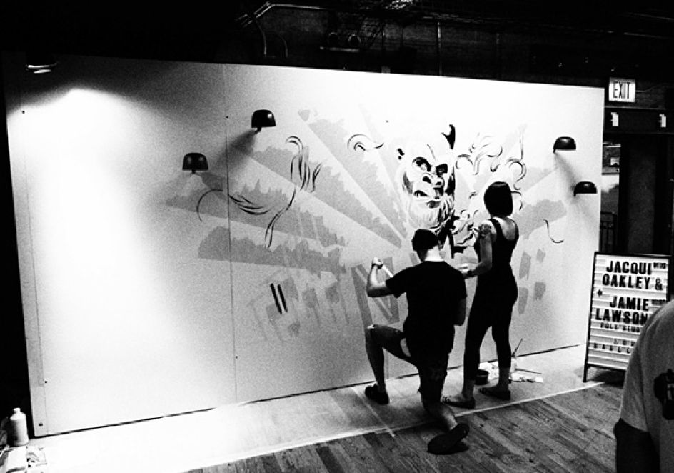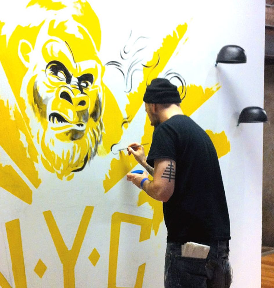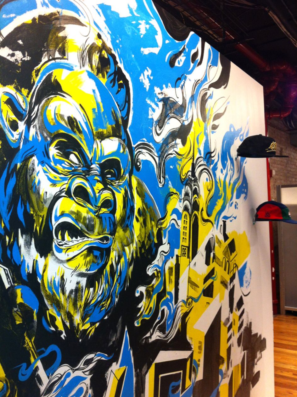 They were given a big 12×8′ freestanding wall and kindly had free reign to play with a New York theme, so of course they came up with a huge King Kong painting. Here's a lovely bunch of images to see their work in progress, along with an ever-so-satisfying time-lapse video for all you wonderful creatives. Enjoy!