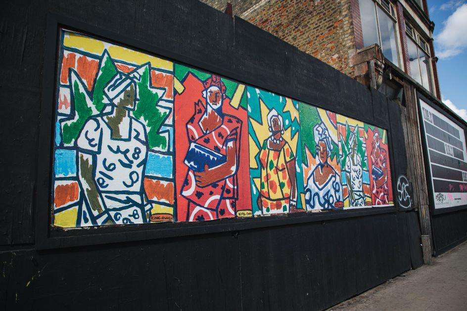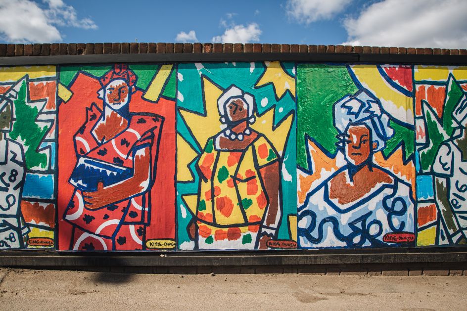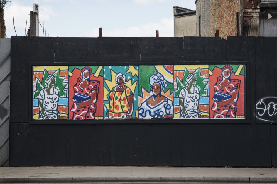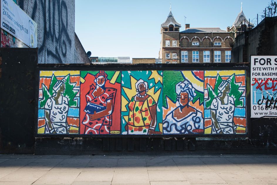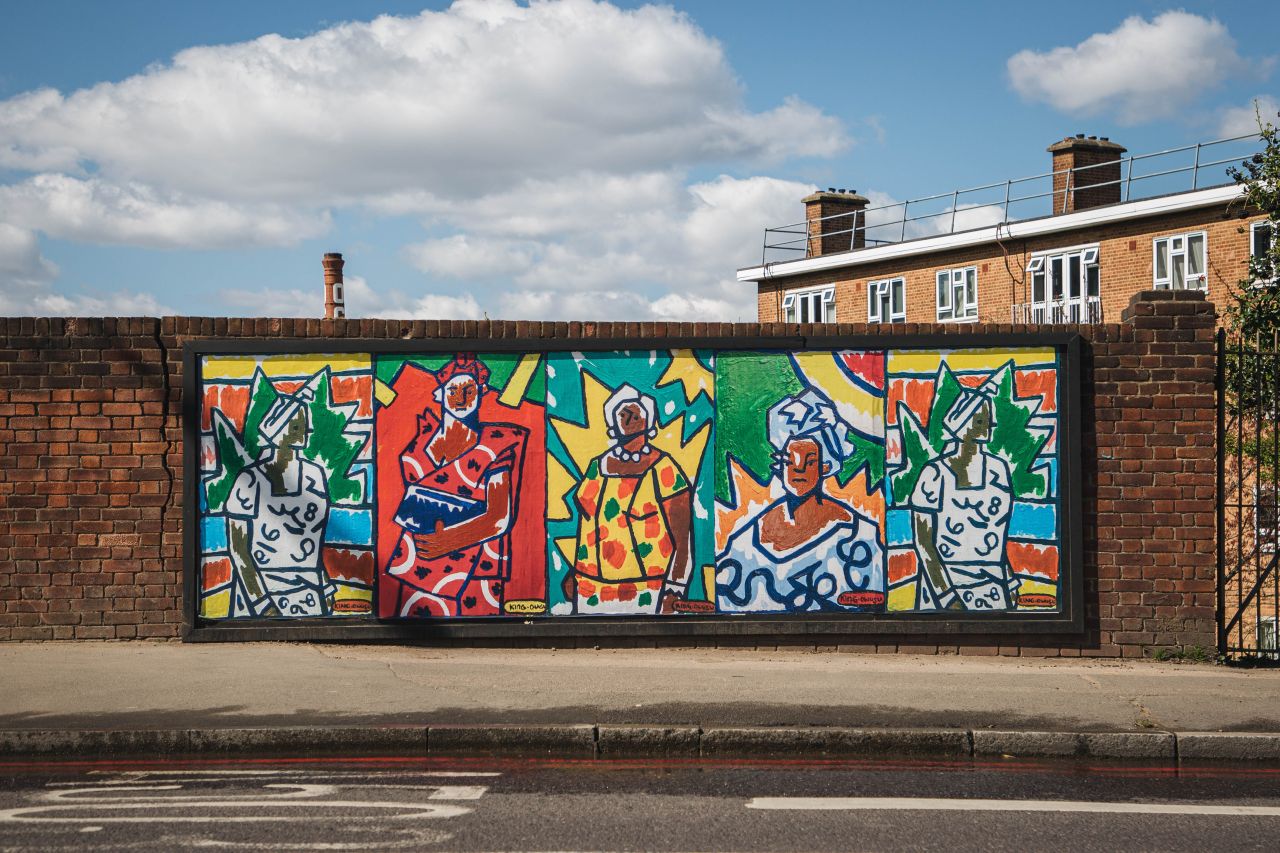 "I've just been really inspired by these women – the support they give to our communities, and the inspiration that they evoke by bringing such a beautiful aspect of our traditional culture to this side of the world. It feels extremely surreal to see it out here; for it to exist in real spaces for everyone to see. I hope this work can inspire other people to paint or create some art too and, for those people that recognise the symbol of these African aunties, that they too feel represented and maybe even a sense of ownership of the artwork."