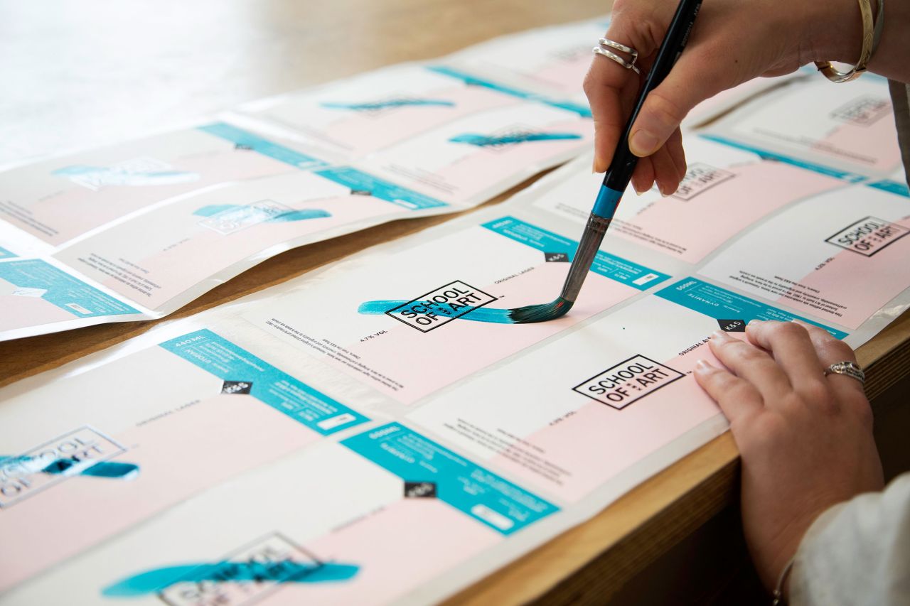 The branded invitations and bespoke beers had a hand-painted touch, pointing to the School of Art's background for offering classes in freehand drawings, printing and still-life painting.