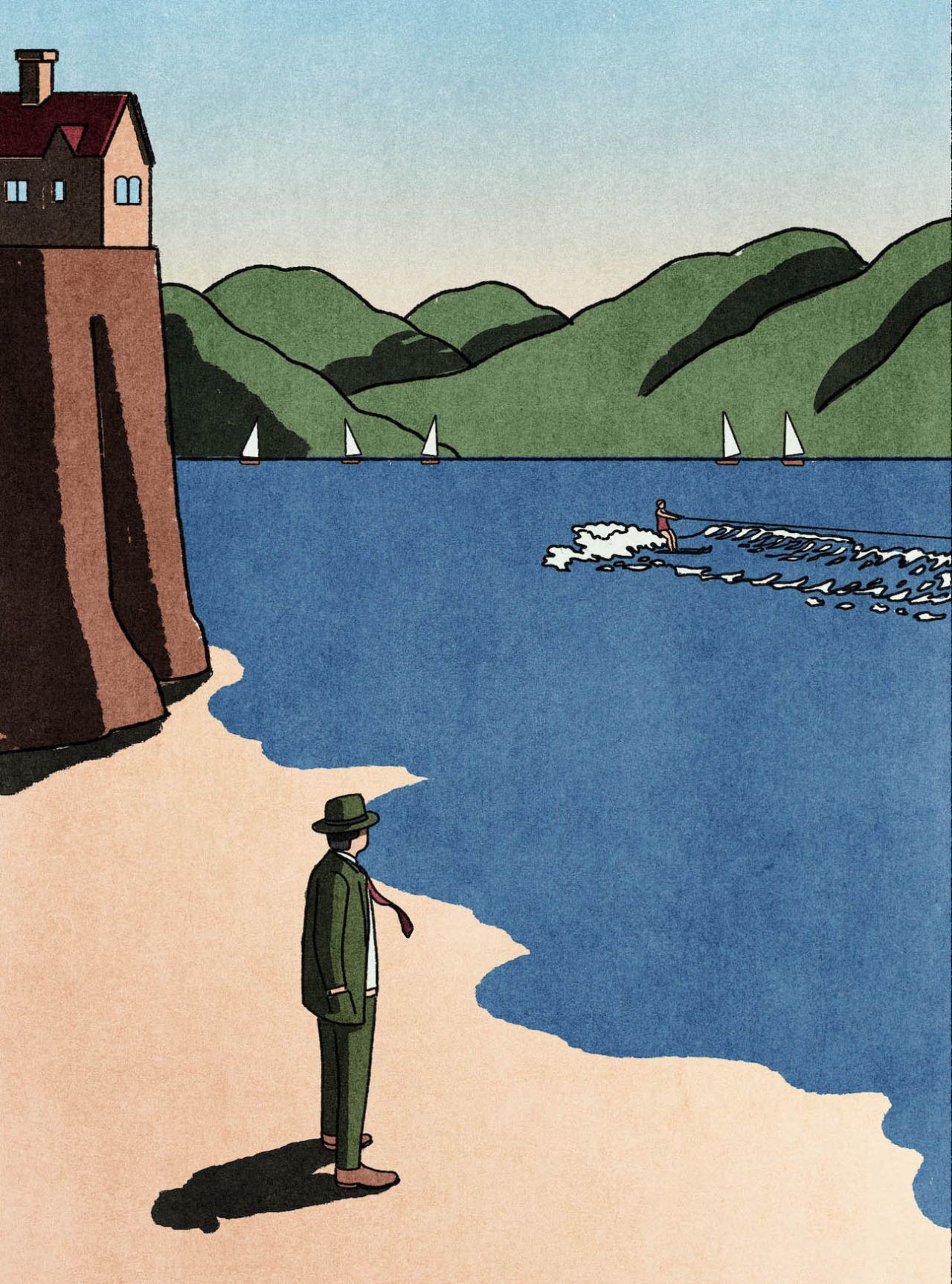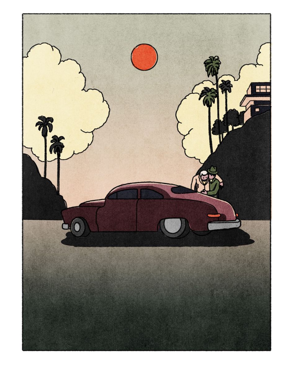 The biggest challenge for the illustrator was considering how to make the cuts of light and shadow without creating an atmosphere that was too dark. He created the California scenery from memory thanks to his existing familiarity with the area.