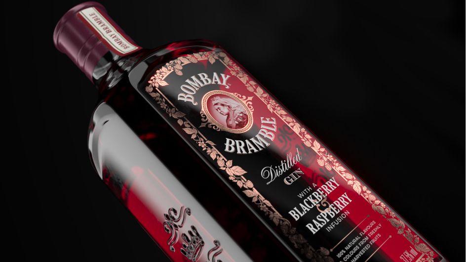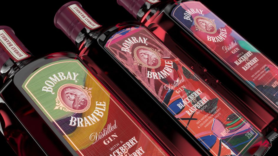 With "elegance and a touch of grandeur", Bombay Bramble is all about detail, so a berry bramble etched in rose-gold lies at the heart of the identity, immediately telling us about its flavour while creating a delicate frame that stands out on its packaging. Clear labels are used to "celebrate" the gin's ruby rich colour and add a jewel-like quality. The final touch is a deep red cap off-set by the scarlet ink on the neck label: a two-tone duality that signifies the blend of blackberry and raspberry.
