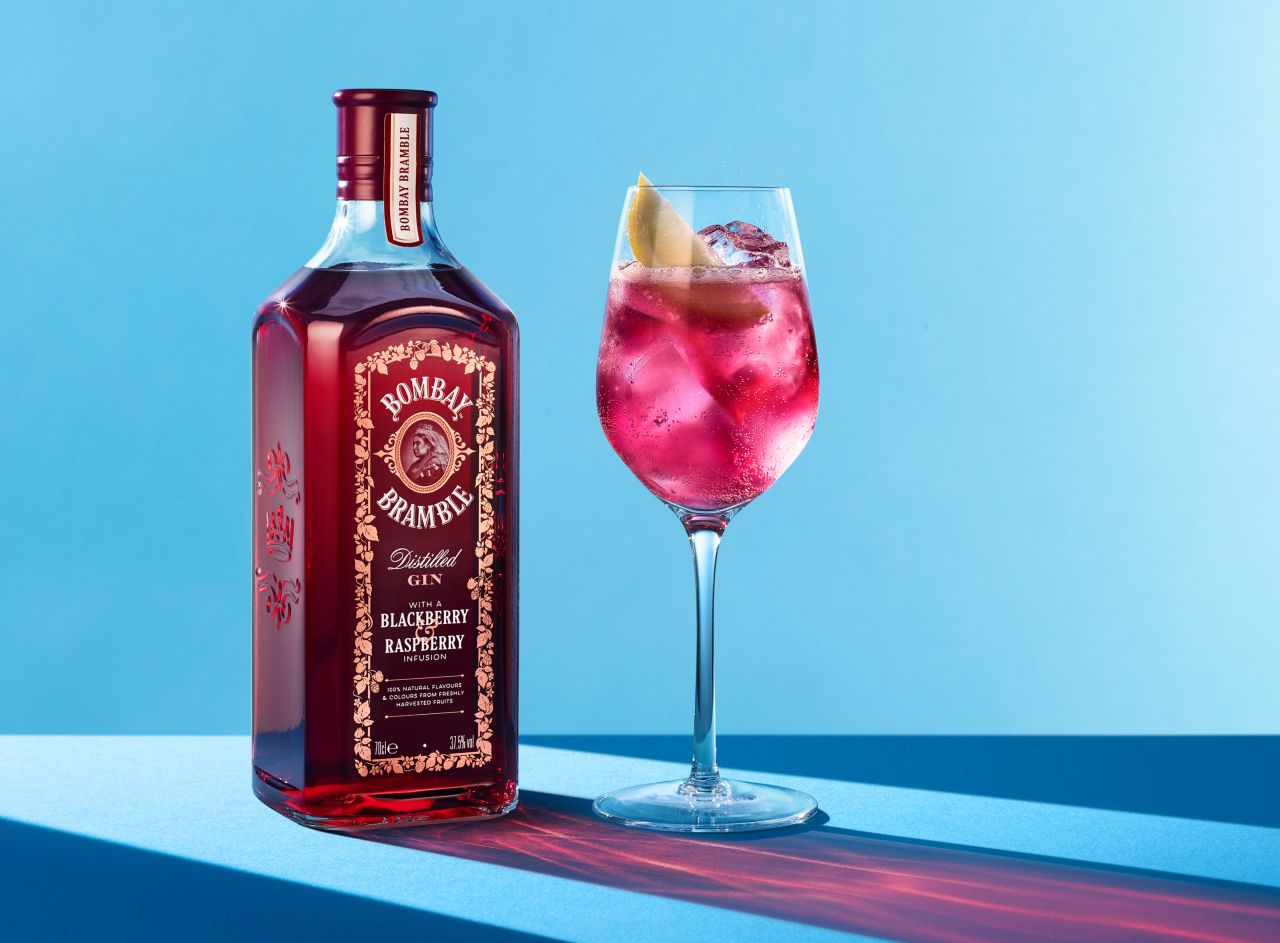 London agency Knockout is behind the identity and bottle design for Bombay Bramble, Bombay Sapphire's new ruby-red drink that blends the vapours from the drink brand's distilled London Dry Gin with a rich fruit infusion made from blackberries and raspberries.