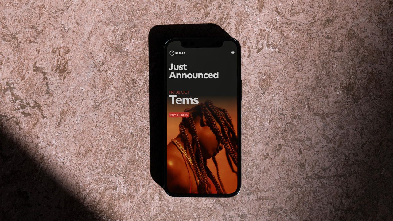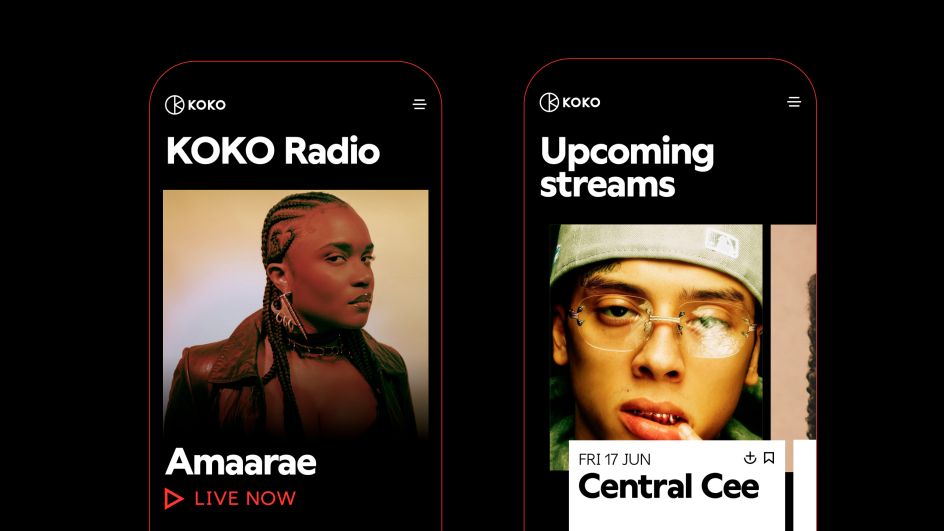 A modern rebrand wouldn't be complete without a digital platform, and that's just what KOKO's been given. Now capable of entertaining London and people all over the world, KOKO's democratised music platform provides a space where new artists can be discovered and well as ensuring the biggest names remain accessible.