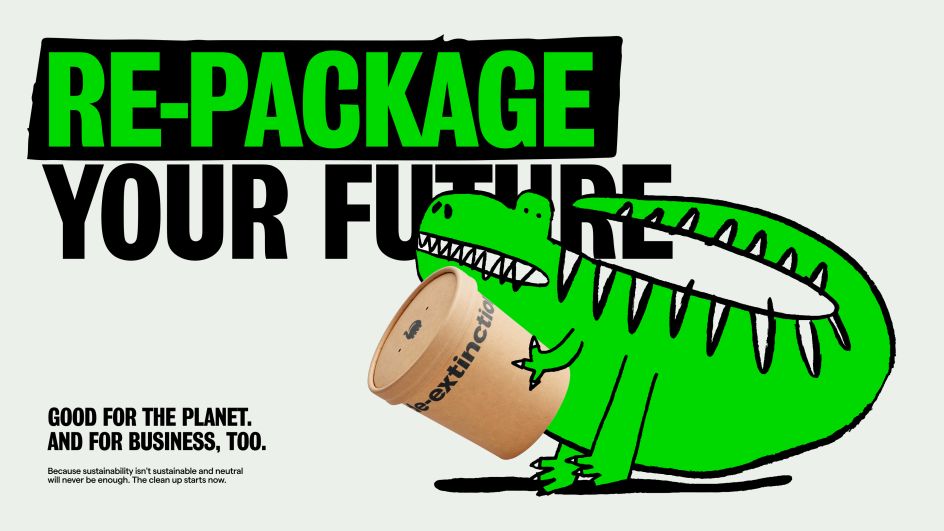 The result is a brand that's striking yet self-aware. And considering that softer approaches don't appear to have the desired results when it comes to reversing climate change, perhaps the time is right for a more in-your-face approach. After all, if we don't change, humanity risks going the way of the dinosaurs itself.