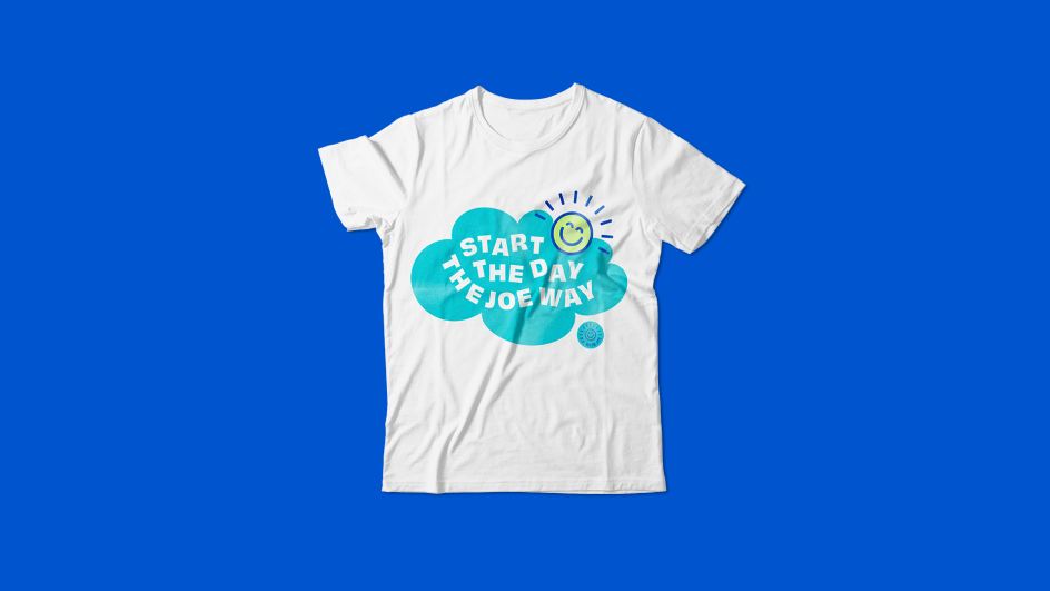 "We wanted to reflect the true family engagement of Joe's weekday sessions. From celebrities to everyday people lots of the content shared is of families doing the workout together day in day out. We wanted the work to capture his spirit, with an abstract Earth and a clear big smile. We also wanted the sun to feel a bit like Joe as well."