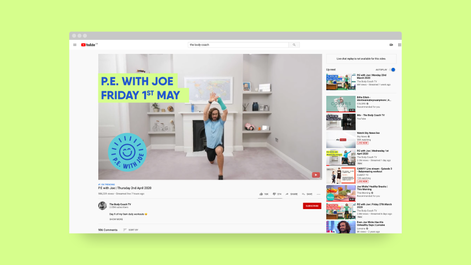 What was the brief? There wasn't one. It was Koto's founder and creative director James Greenfield who decided to help: "We've been working with Joe and his team on some other work which will come out later in 2020," he tells Creative Boom. "In the meantime, I saw the positive effect P.E. was having on a lockdown world, especially in my own family with both my nephews loving it.