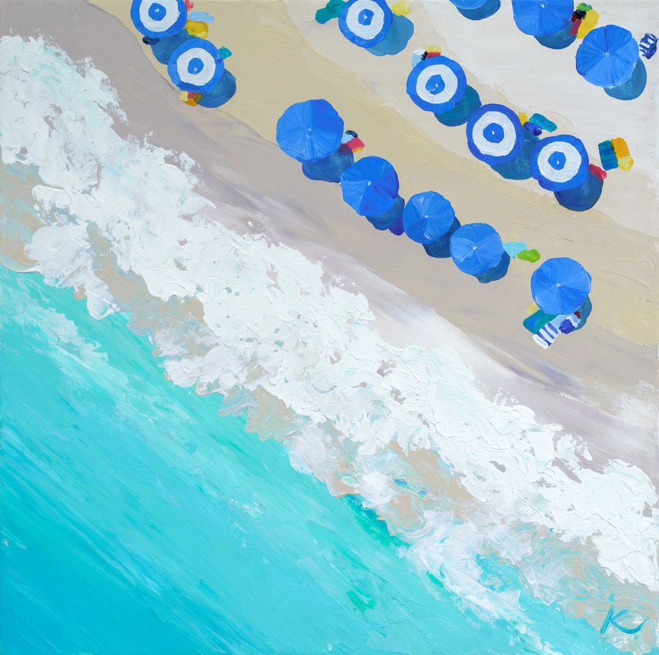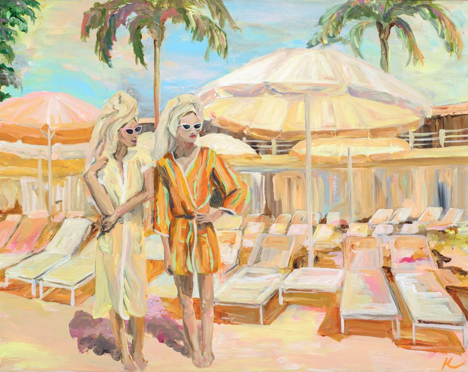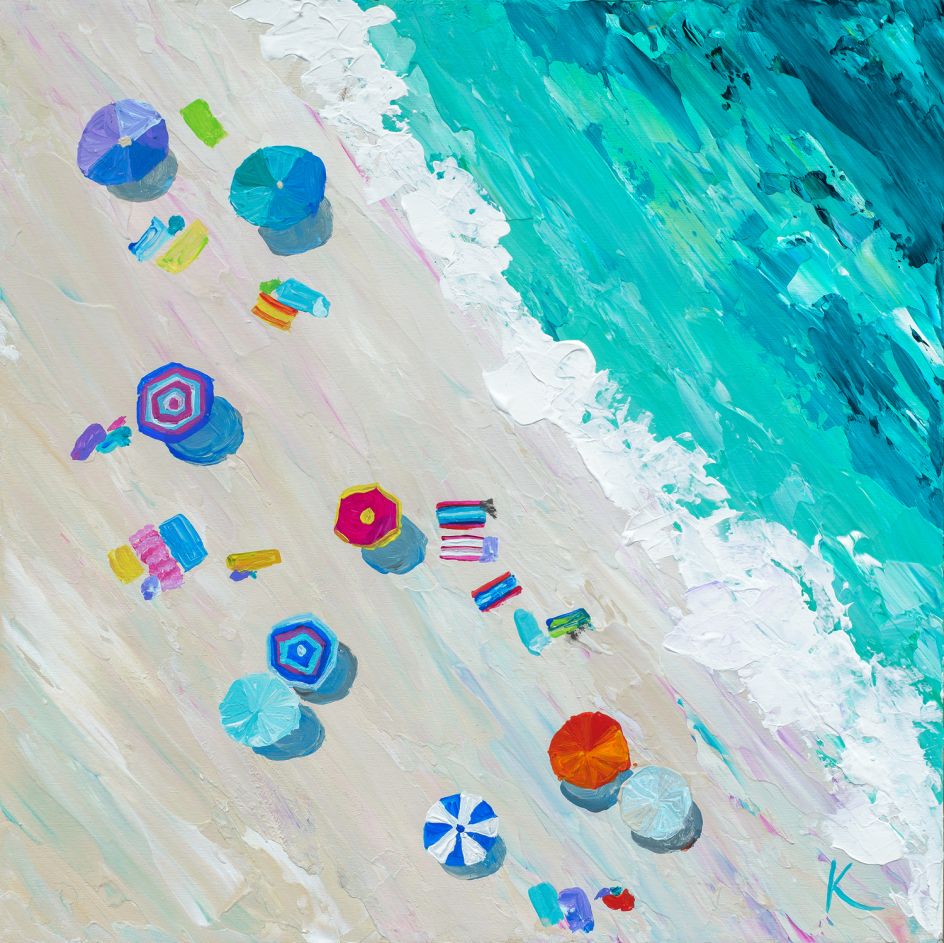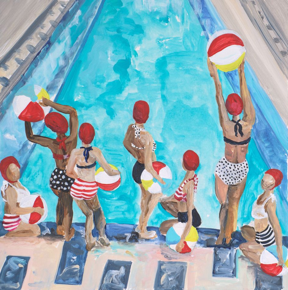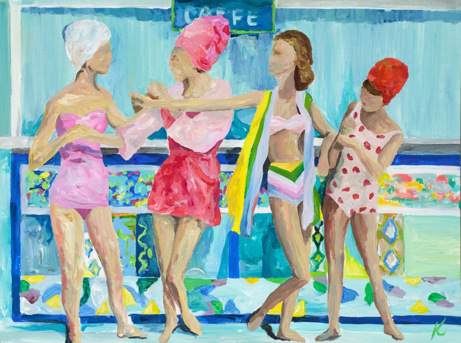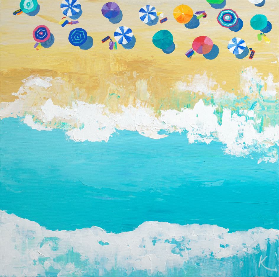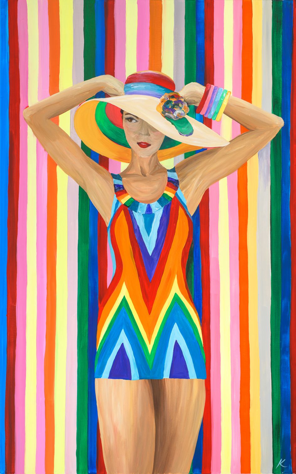 She paints "life-on-the-beach" that's bold, bright, wildly playful, and crave-worthy – from umbrella-popping seascapes and beach vibes to poolside poses, tidelines, tanlines and crazy colourful bathing beauties.