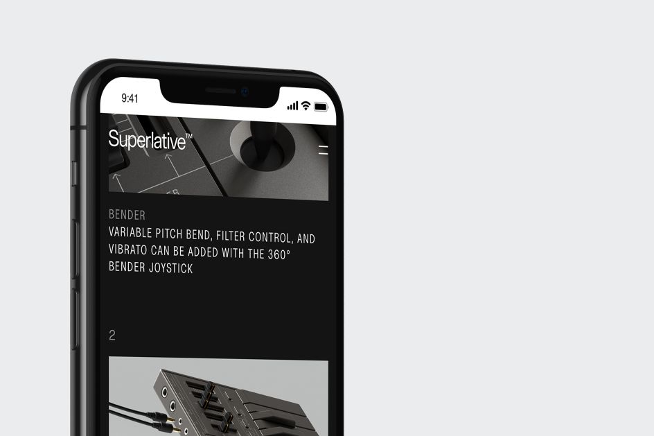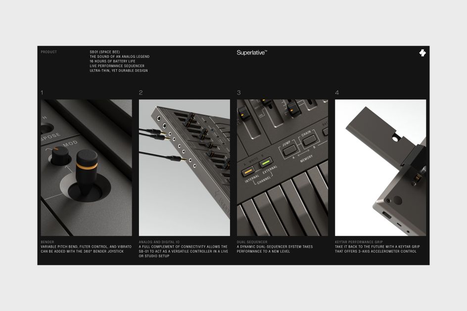 A key concern in the designs for the Superlative was that its creators ultimate aim is to design more tools within the range, so the Kurppa Hosk team aimed for a look and feel that focused on the product itself while beating an identity that acted as a framework or "visual platform" that meant the graphic identity never overshone the synth itself.