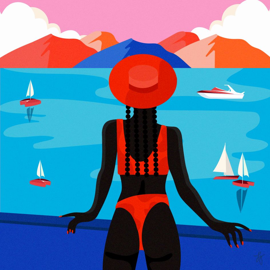 More recently, her work has been shaped by this year's pandemic and the Black Lives Matter movement: "To be honest during the majority of Covid-19, I wasn't inspired to create much of anything other than the client projects I was required to do. There was an overall feeling of anxiety and the pressure to execute a lot during this time. The pieces that were created were rooted in escapism and travel – for obvious reasons.