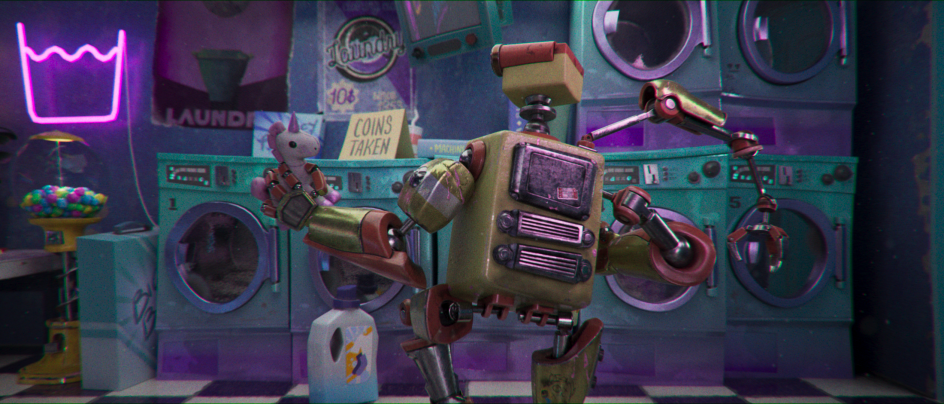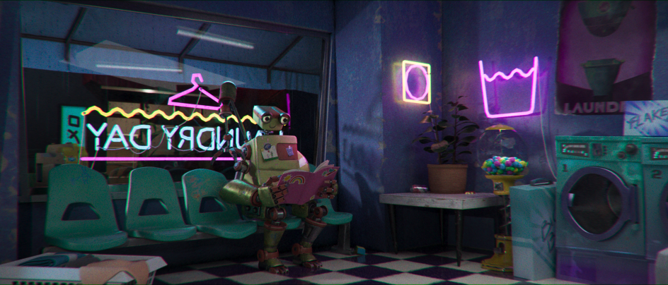 Wanting to explore the two tools as part of the studio's pipeline and upskilling the wider team, Bomper opened the floor for ideas to be pitched forward as part of the development. The one they settled on centres around the intersection of technology and humanity in an inner-city laundromat. And the result is surprisingly magical.