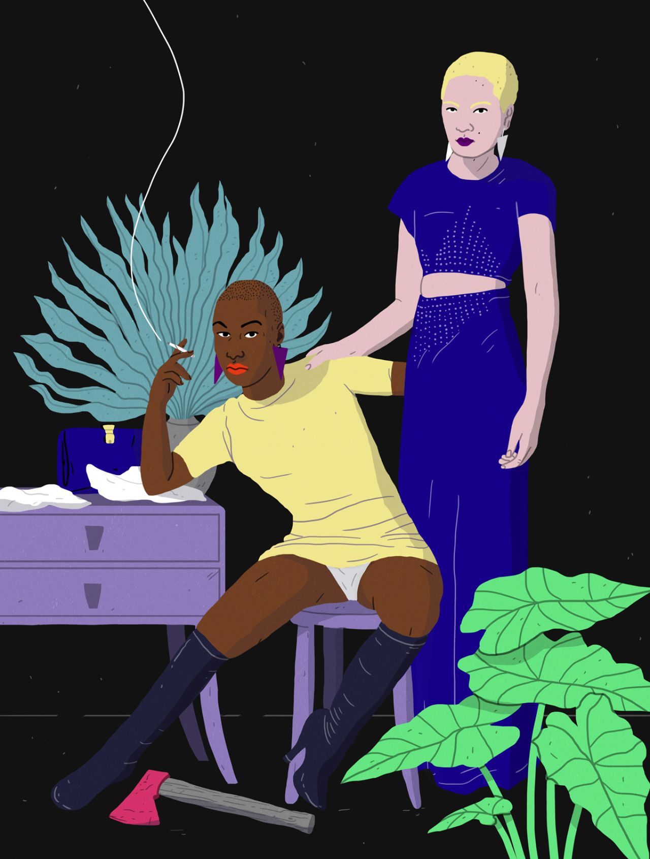 Much of Breiling's work explores gender related topics, though she says that her "love for plants also shows up now and then." As well as drawing from these global themes and botany, the illustrator also shows a knack for taking real-life everyday experiences into her work: the image of three girls in headscarves, for instance, was inspired by "three girls I saw at Kottbusser Tor in Kreuzberg [Berlin] a few weeks ago," says Breiling. "I love their style, which is a mixture of traditional clothing and street style."