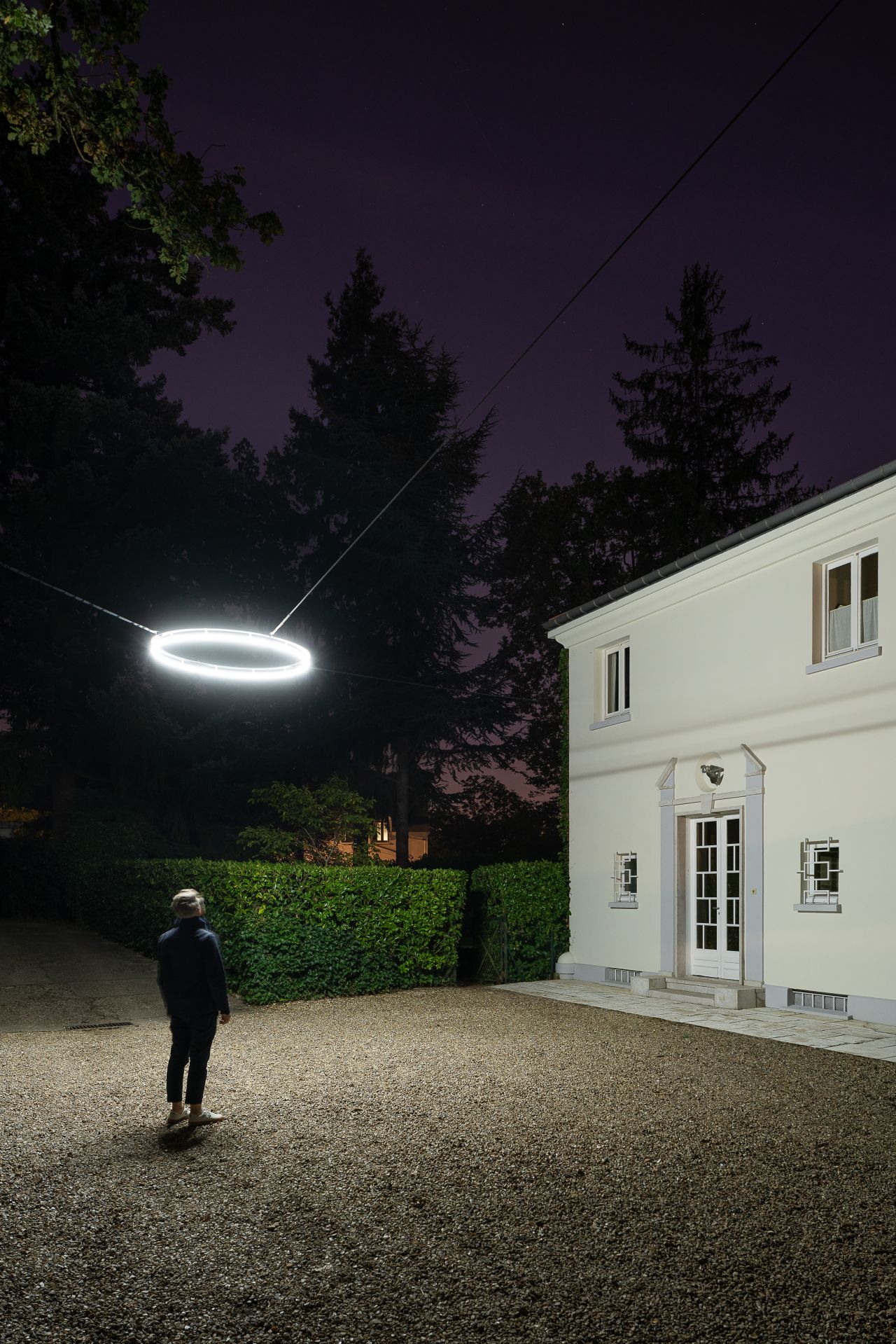 French architect Franklin Azzi recently created a heavenly light installation which looks like a floating halo for the Genius Loci exhibition at Gio Ponti’s villa L’Ange Volant.