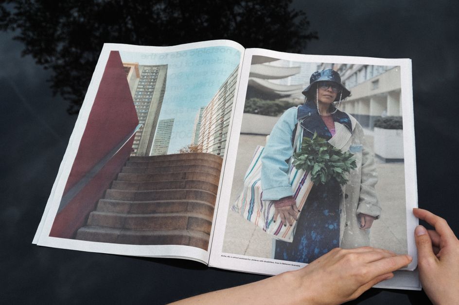 The images are reproduced in a tabloid newspaper designed by 21–87, which brings together an ensemble cast including Mounir, an actor-comedian who grew up in the area; Benoit, who has been a resident since the development was built in 1974; and young artist Lea, a recent arrival drawn to the area by her own familial memories.