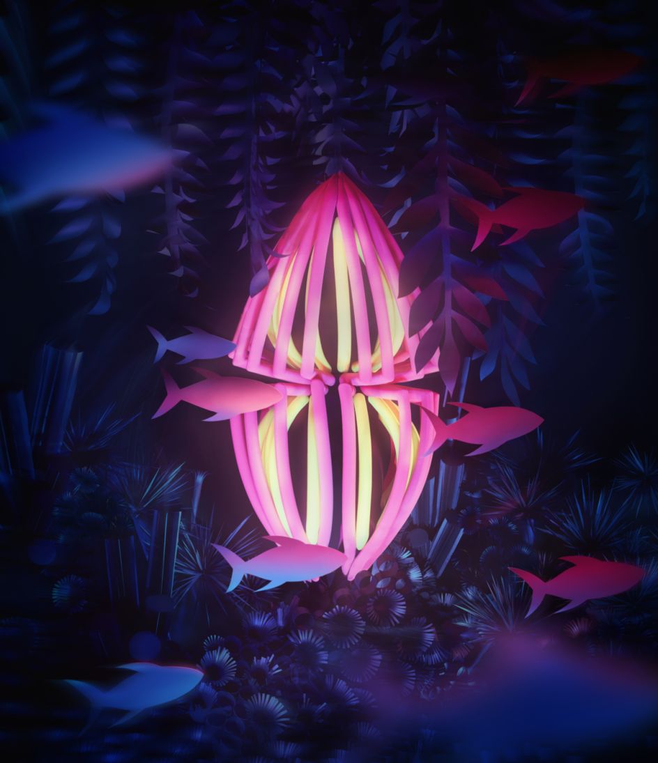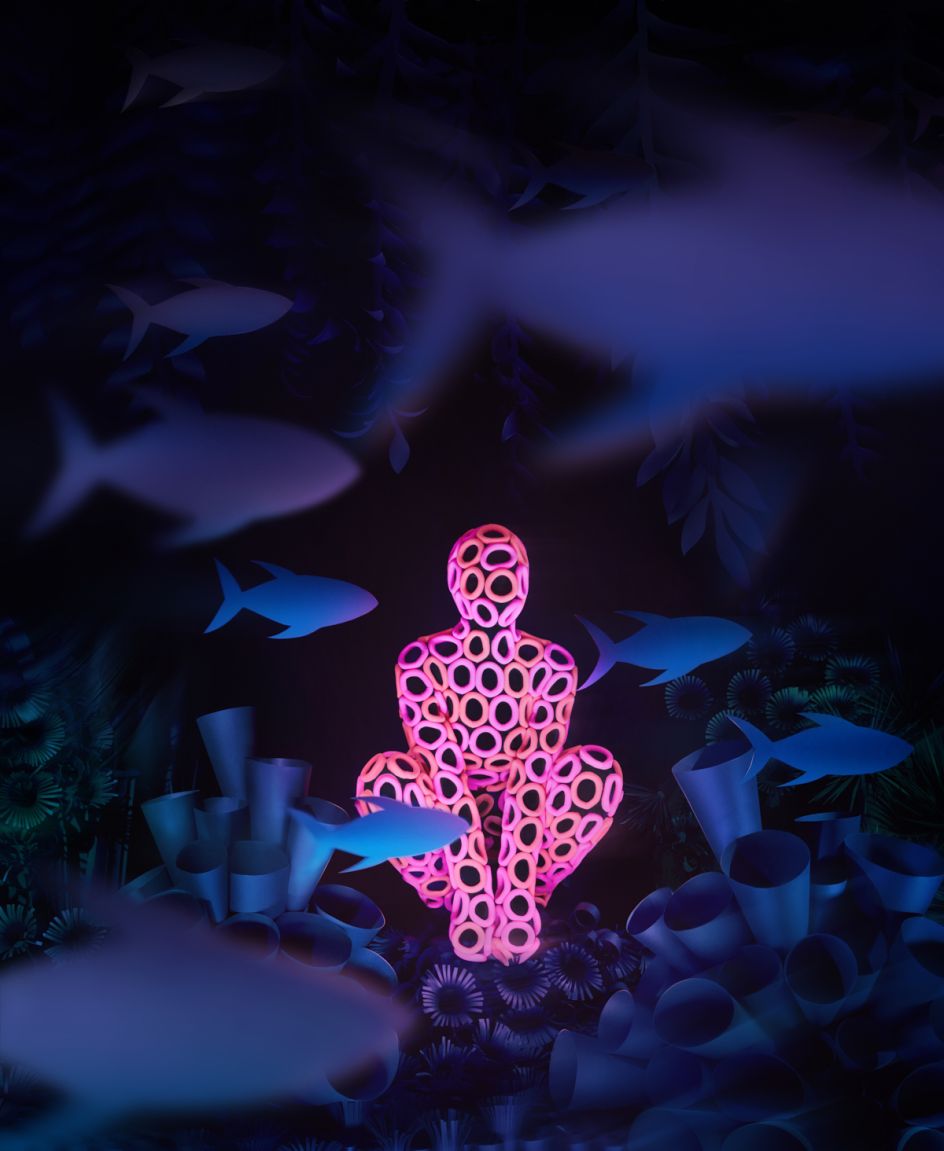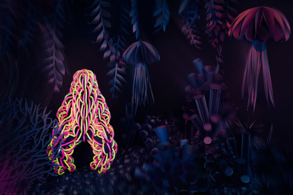 This colourful neon vision of an undersea environment is the result of a photo shoot at the studio of designer Roman Ermakov, who's famous for his avant-garde costumes, and which became the central objects in the images.