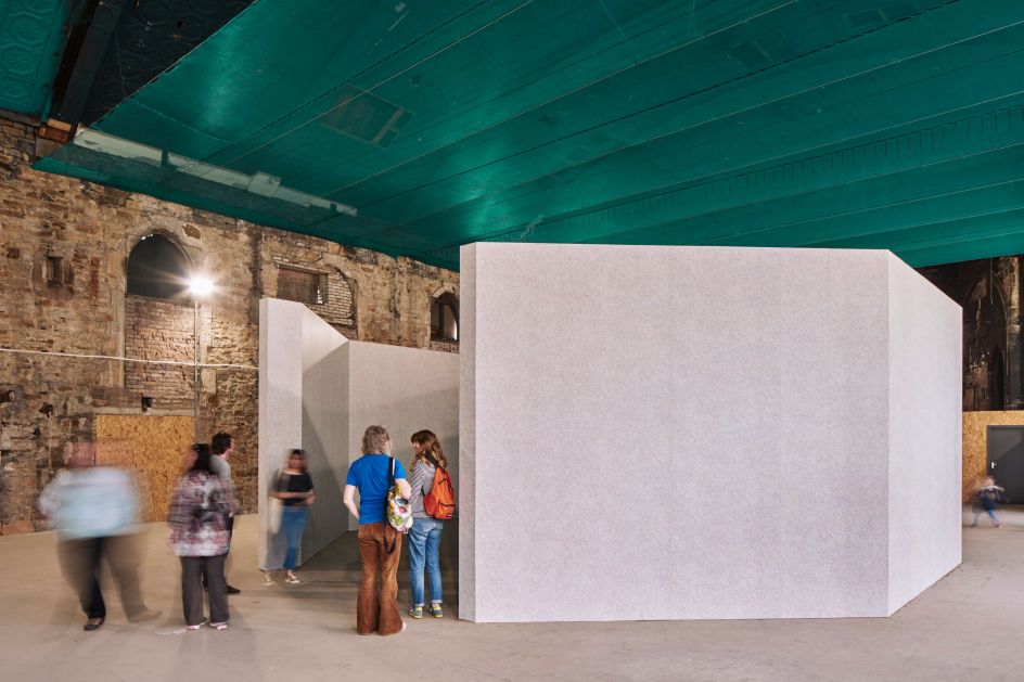 Appearances are purposely deceiving as the structure, clad in bespoke wallpaper (thanks to a collaboration with wall coverings firm, Graham & Brown), purports to be one colour when it is really the sum of its multi-hued parts, a fact revealed as visitors move towards and inside the piece.