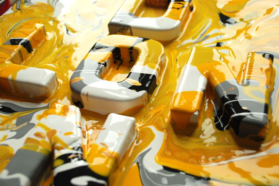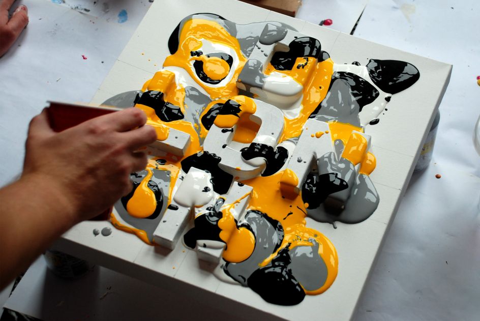 Creating a 3D canvas that spells out the capital's name, Craig used a palette of yellow, grey, black and white to drip the paint onto the letters. He then allowed the artwork to dry, leaving us with a rather nice personal project. The whole process was filmed for our pleasure.