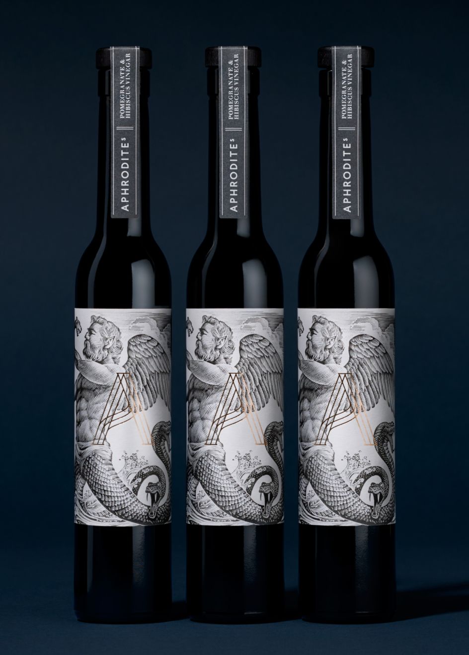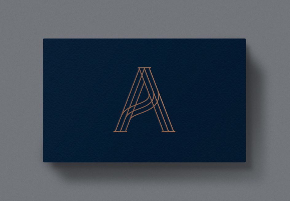 Led by creative partners Will Gladden & Claudio Vecchio, the London studio said of its design: "Sprung from the deep-blue depths, Aphrodite is historically depicted as a beautiful woman with golden hair. We reference the goddess with a golden 'A' monogram, it's undulating lines referencing her flowing hair and birth from the waves.