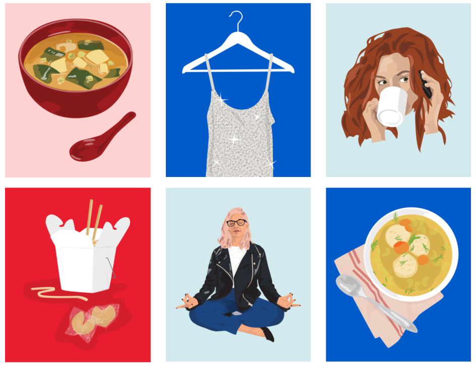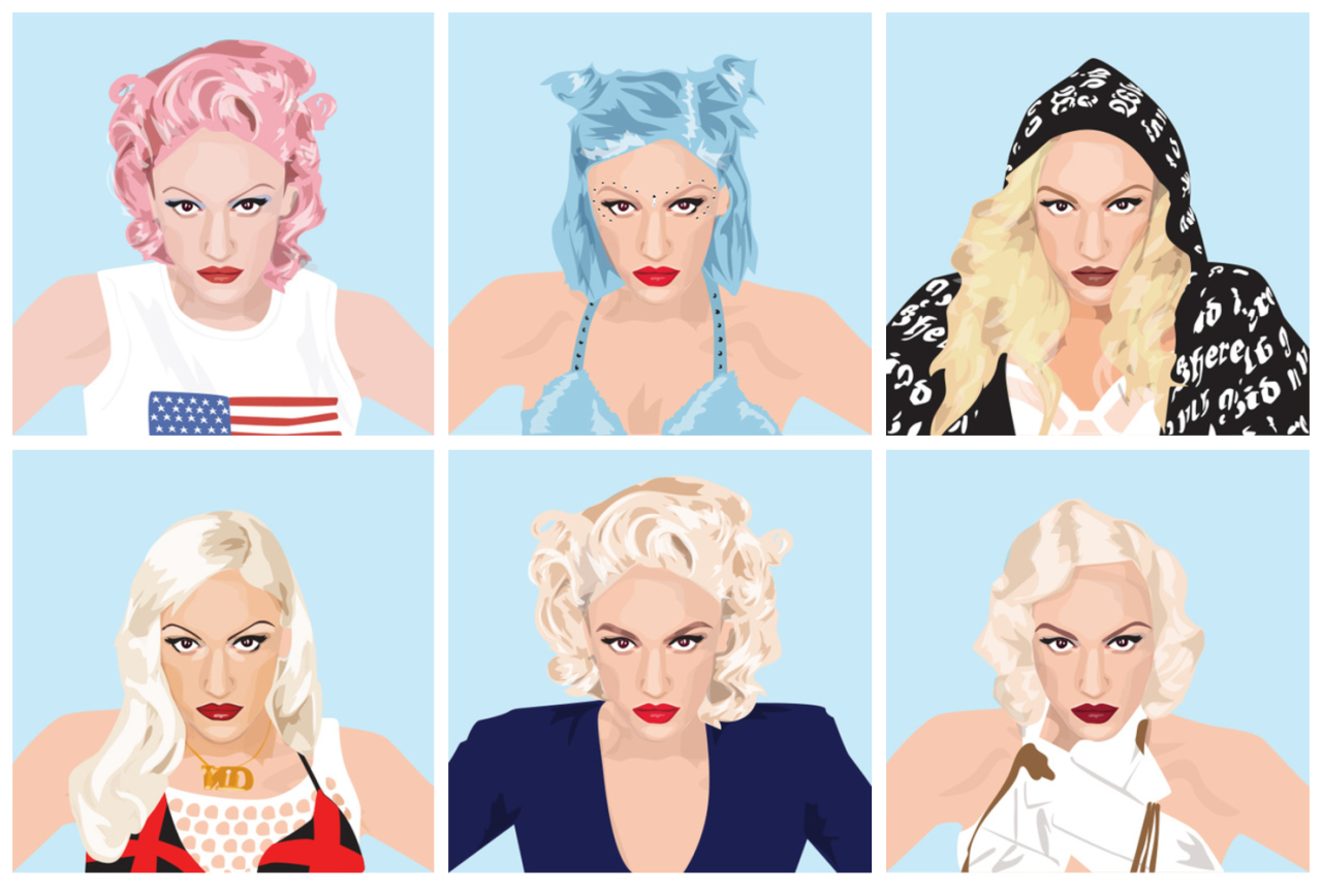 Her personal work showcases a playful and sensitive approach to drawing famous figures, and we love her set of pictures tracing the many faces and styles of Gwen Stefani. The painterly style feels at once classic and modern whether in portraiture, Insta-style food illustrations or vibrant beach scenes.