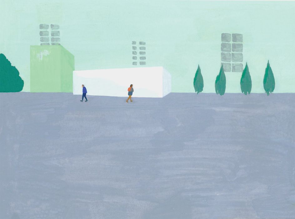 "I draw upon the themes of minimalism and my paintings are small, intricate and inviting," she says. "I utilise a variety of textures from watercolour, acrylic and gouache, and occasionally coloured pencil. It is important for me to use my surroundings and to find interesting, simple architecture and locations as fuel for my art to create a tangible and accessible space.