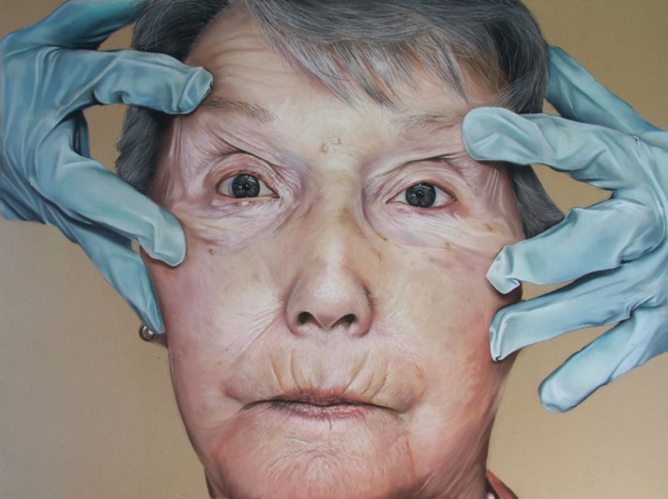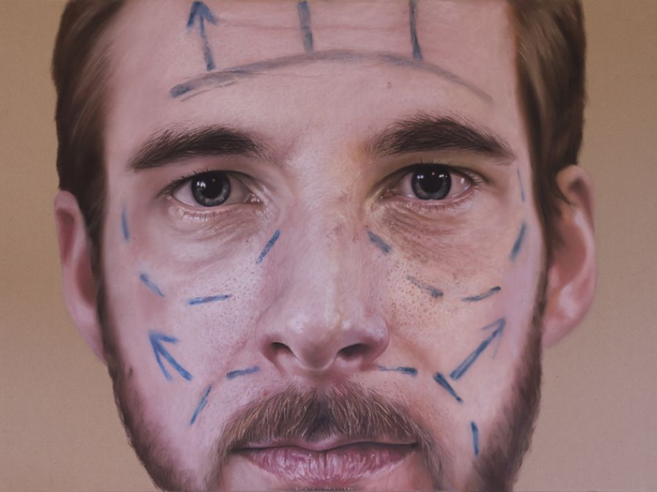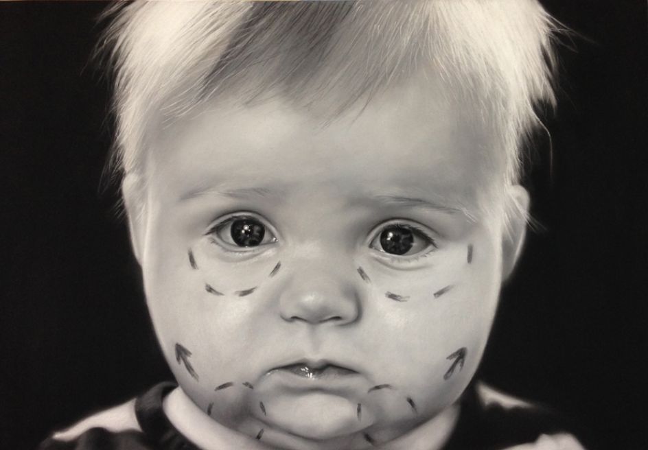 Jones adds: "My work is a retort towards the way this improper image of the flesh is advertised, manipulated and exploited, it takes the form of large scale photo-realistic drawings using paper and chalk pastel as their fragile properties reflect and enhance the fragile nature of the flesh but more importantly the application is comparable to the way we apply products, touch and handle skin. It also aims to dispel the immediacy of the instant and technological portrayal of the exterior that we have become accustomed to due to the time taken during the process, application and completion of the piece."
