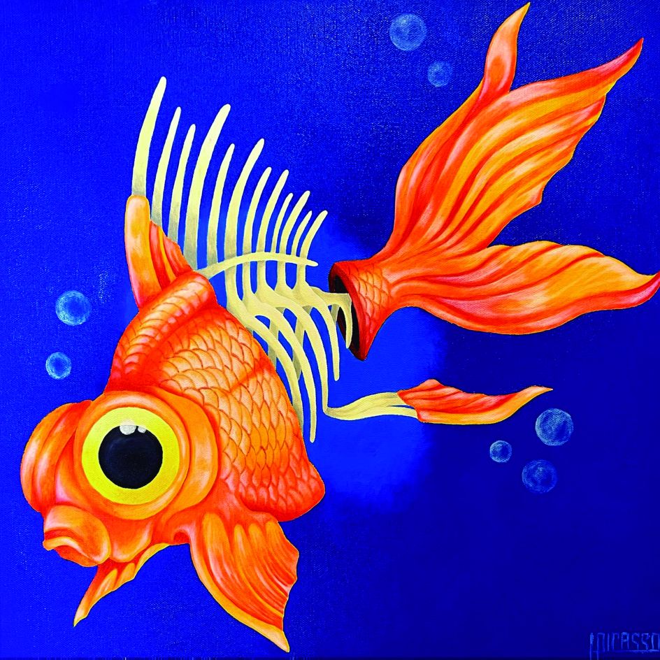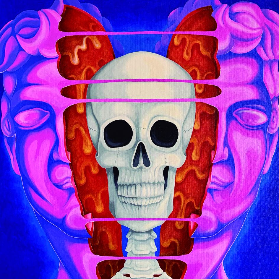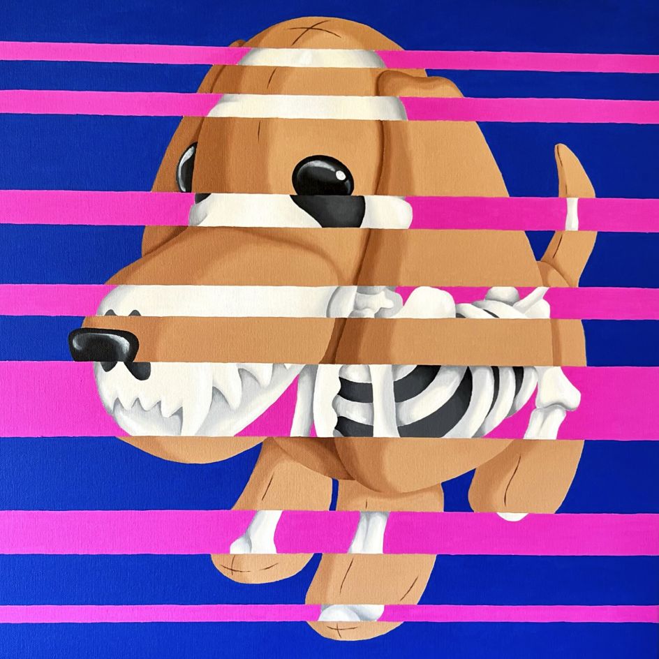 At once cartoony and a bit gruesome, the paintings of Luis Pedro Picasso rip apart everything from a puppy to a rocking horse and reveal what's lurking beneath the surface. Luis's combination of styles, representing a fusion of pop art and dissection, taps into his passion for skeletons and how living beings are shaped around them.
