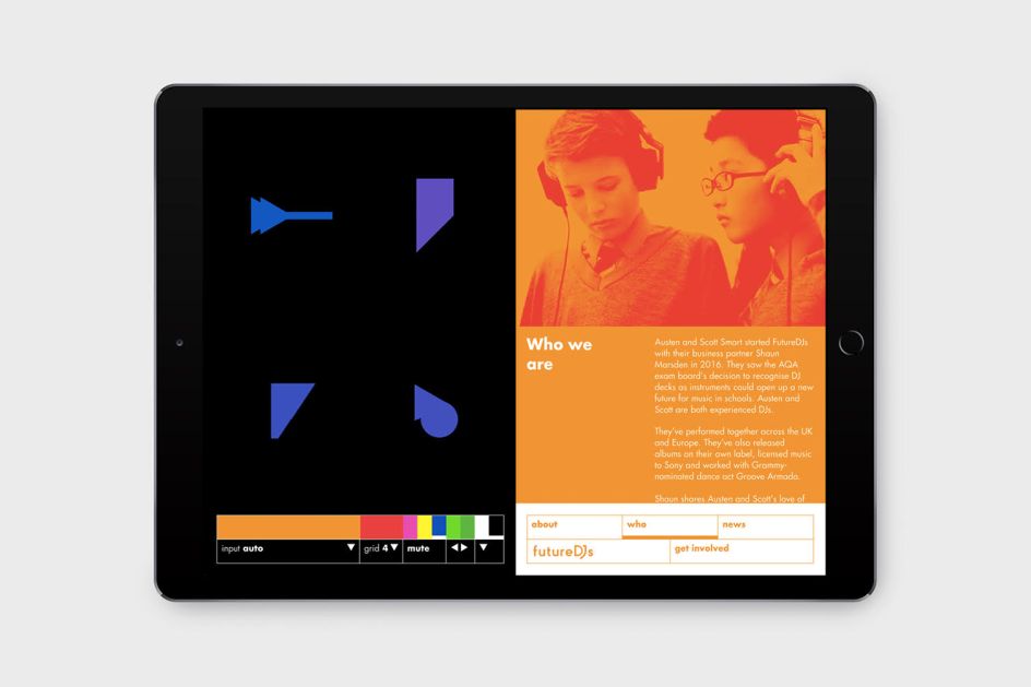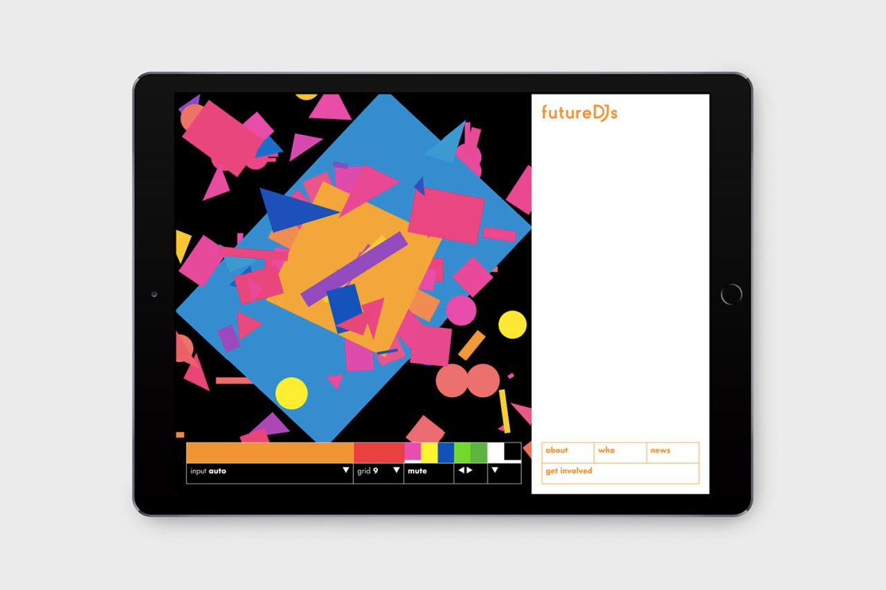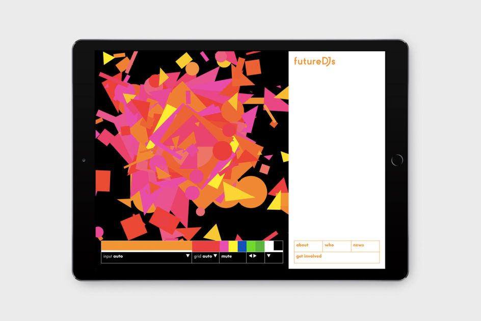 These shapes are used throughout the entertaining, interactive website, giving users a chance to have a go at creating their own music. Developed from a sound responsive animation that the team originally built for school talks, the site uses colourful graphics that users can interact with using their microphone, keyboard or screen to produce their own digital melodies. The more creative you get, the more the graphics come to life (we have to confess to having a little too much fun with this!). Take a look at futuredjs.org.