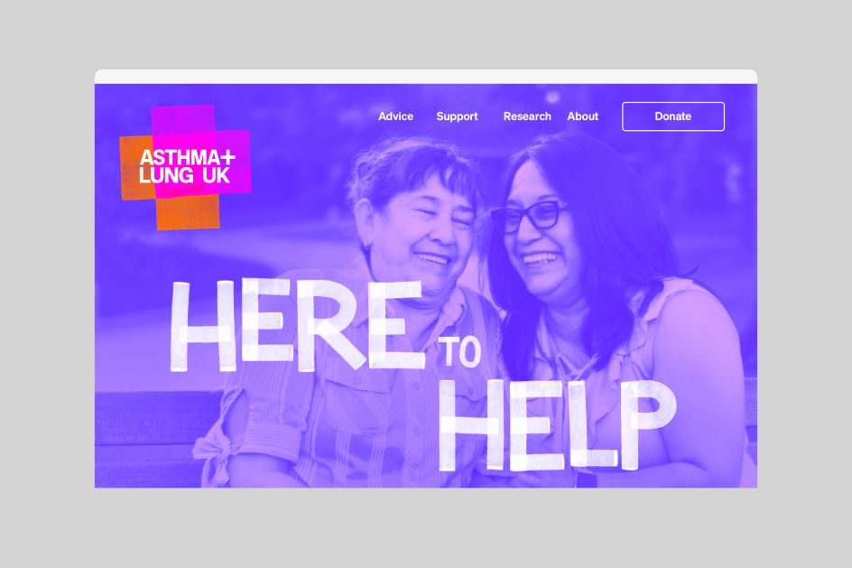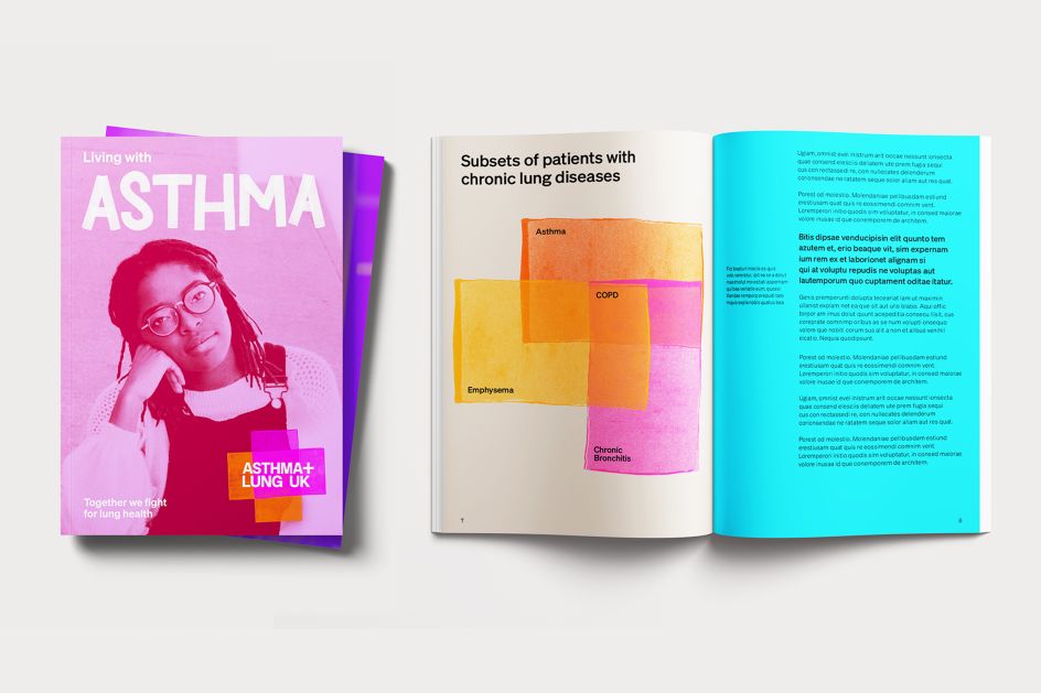Marina Willer and her team created a new visual identity, including logo, typography, colour palette and graphic language, as well as art direction for photography. These all work together to bring to life the newly chosen name of Asthma + Lung UK.
