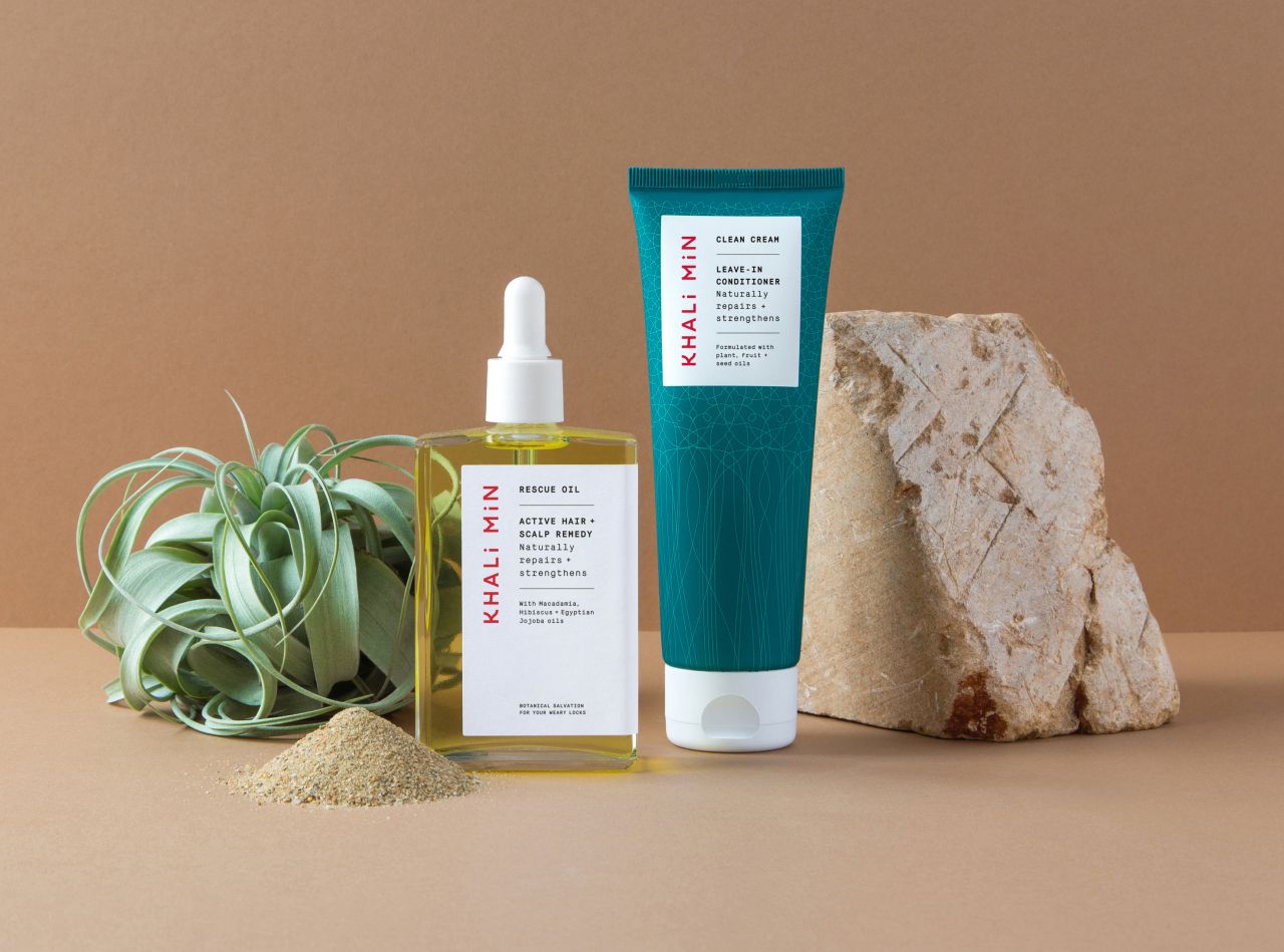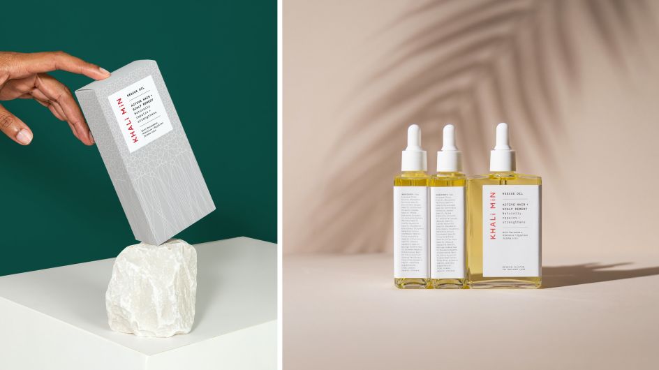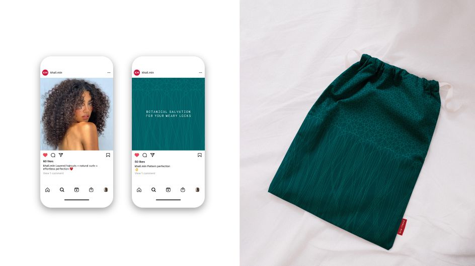 London's Magpie Studio has created the brand identity, packaging and various marketing collateral for a plant-based haircare range called Khali Min, which launched earlier this month in Selfridges.