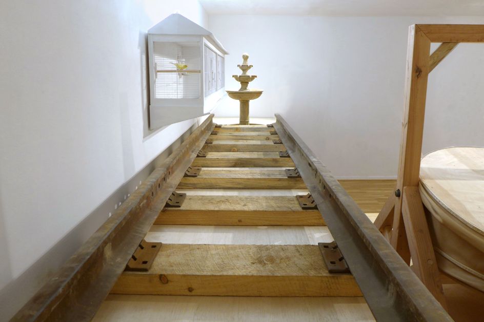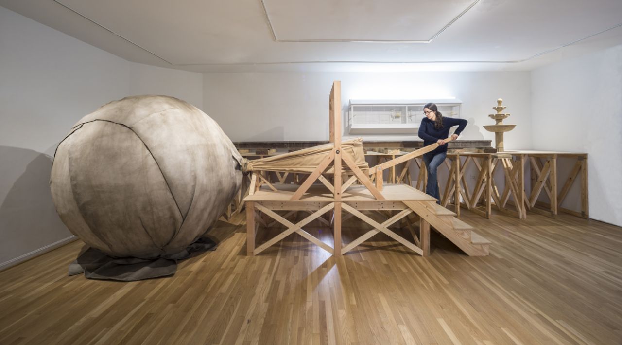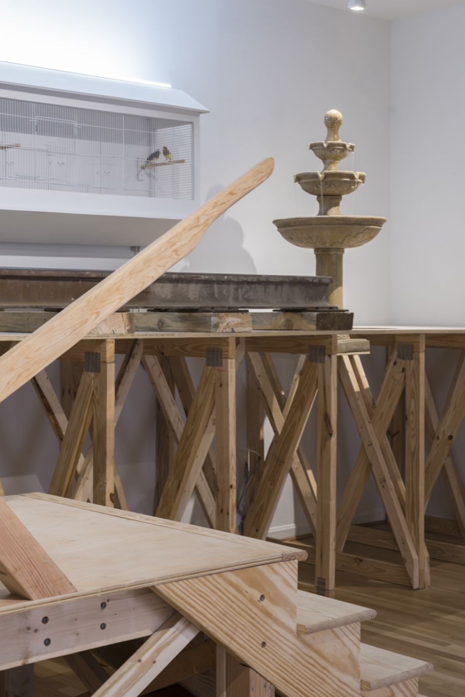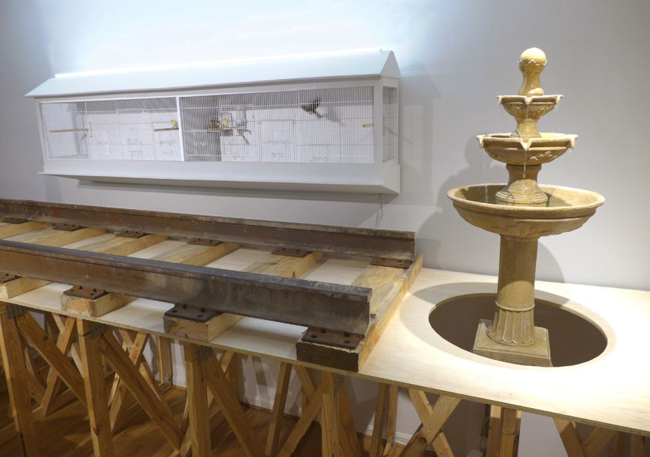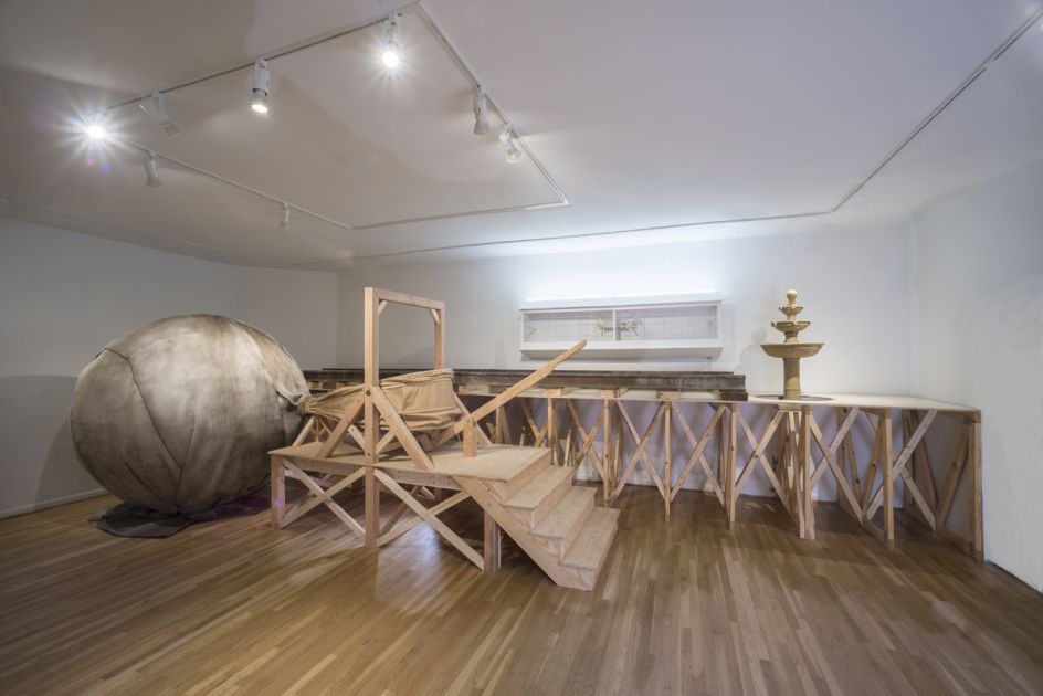 This thought-provoking installation includes a working bellows that inflates a concrete ball, railroad tracks, a water fountain, and four live canaries observing the effort. Clark's work is on show at the space until 29 January.