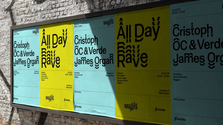 Appearing on digital platforms as well as OOH materials and merchandise, Majefa is now also instantly recognisable thanks to its bold colour scheme. "The client was really inspired by the Hacienda artwork 'Faç Off' by Central Station Design.
