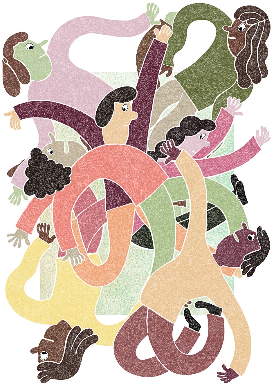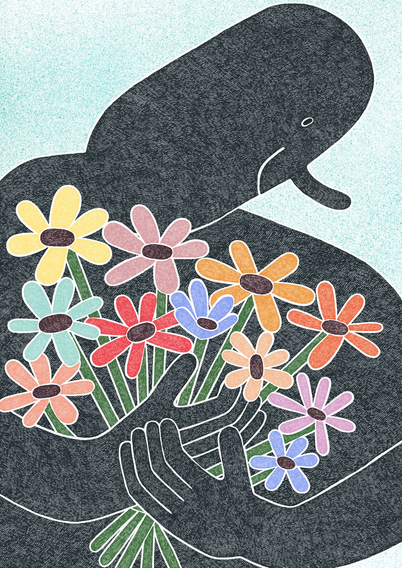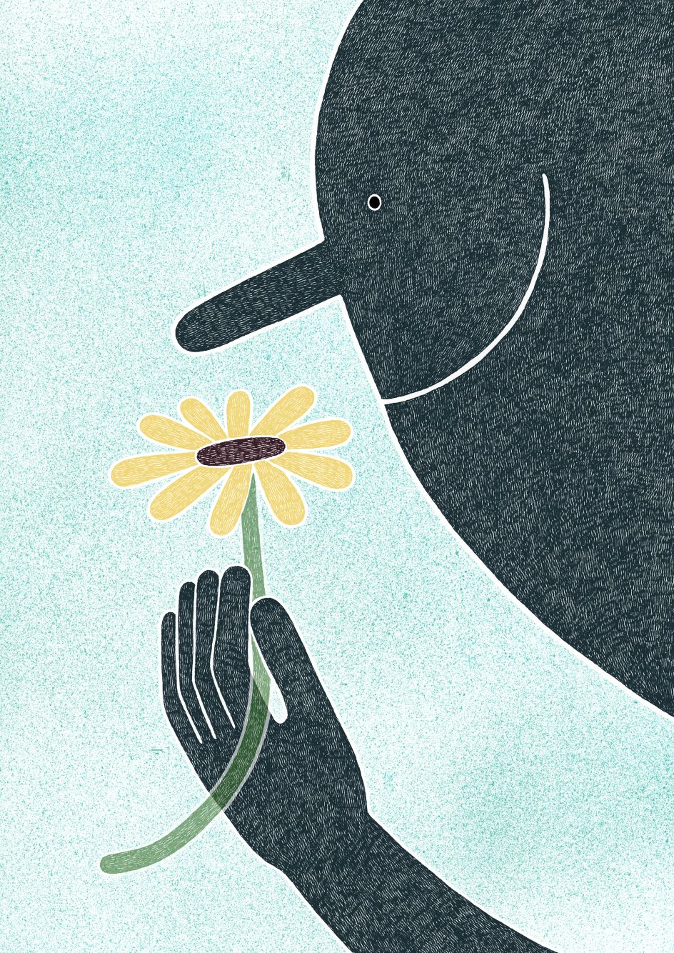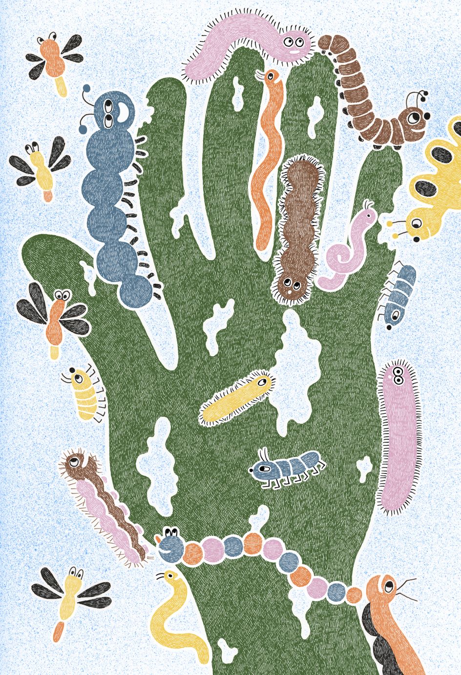 Malin's creative process is meticulous and thoughtful, beginning with an array of pencil sketches on paper that serve as the foundation for a narrative yet to unfold. The final image is cleaned up on a light table and transferred onto heavyweight paper of 220g – using a 0.5 pilot g-tec pen, which lends a bold and distinctive quality to the artwork. "I plan the drawing so that I draw as many parts as possible separately," she says. "That way, I'm still flexible and can move things around after scanning and change the work with colour in the final illustration in Photoshop."
