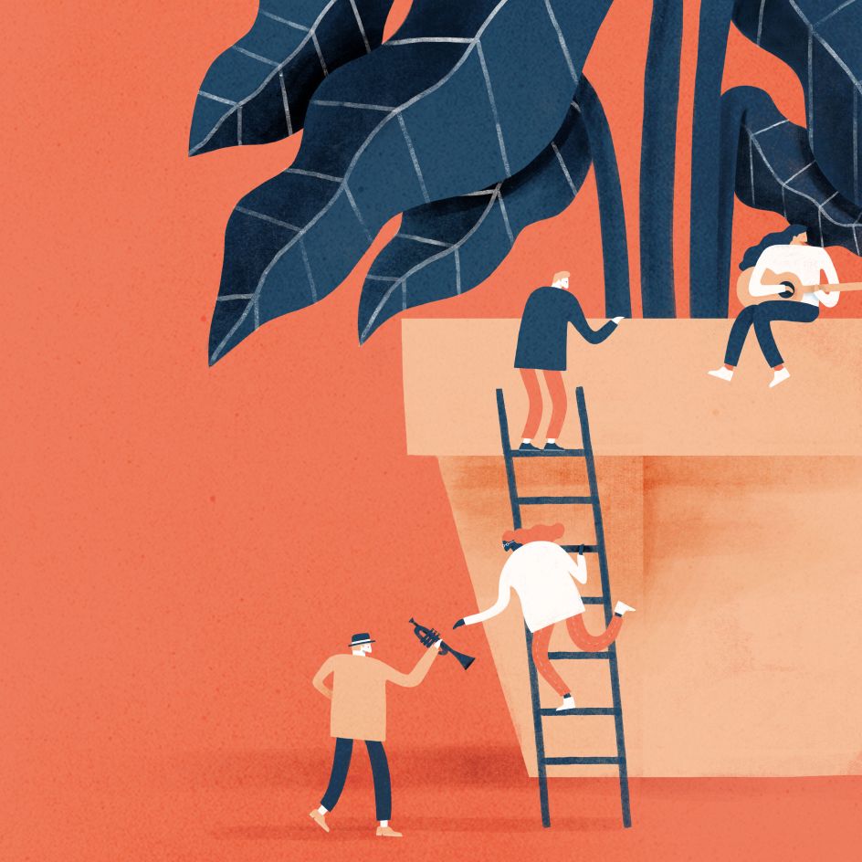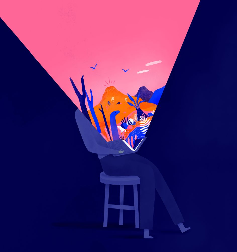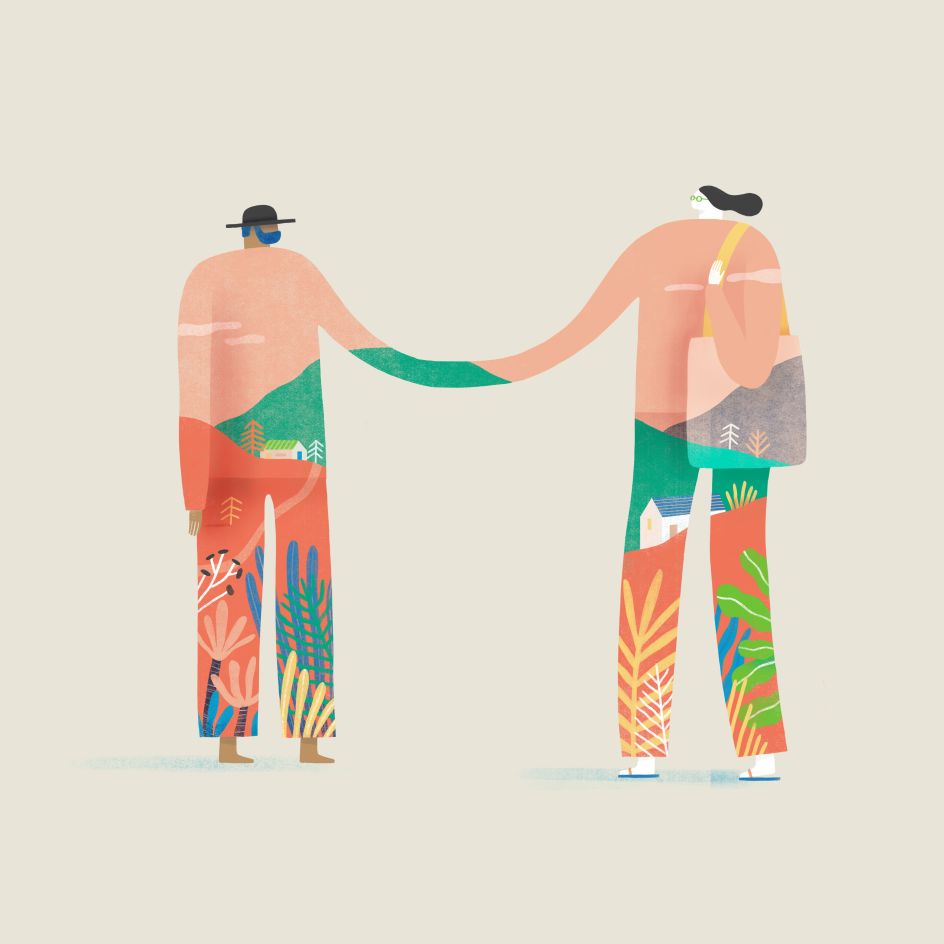Working from his bright and airy home studio for clients such as The New York Times, The Guardian, Airbnb and Stripe, most of his illustrations are character-based, whimsical and emotional.
