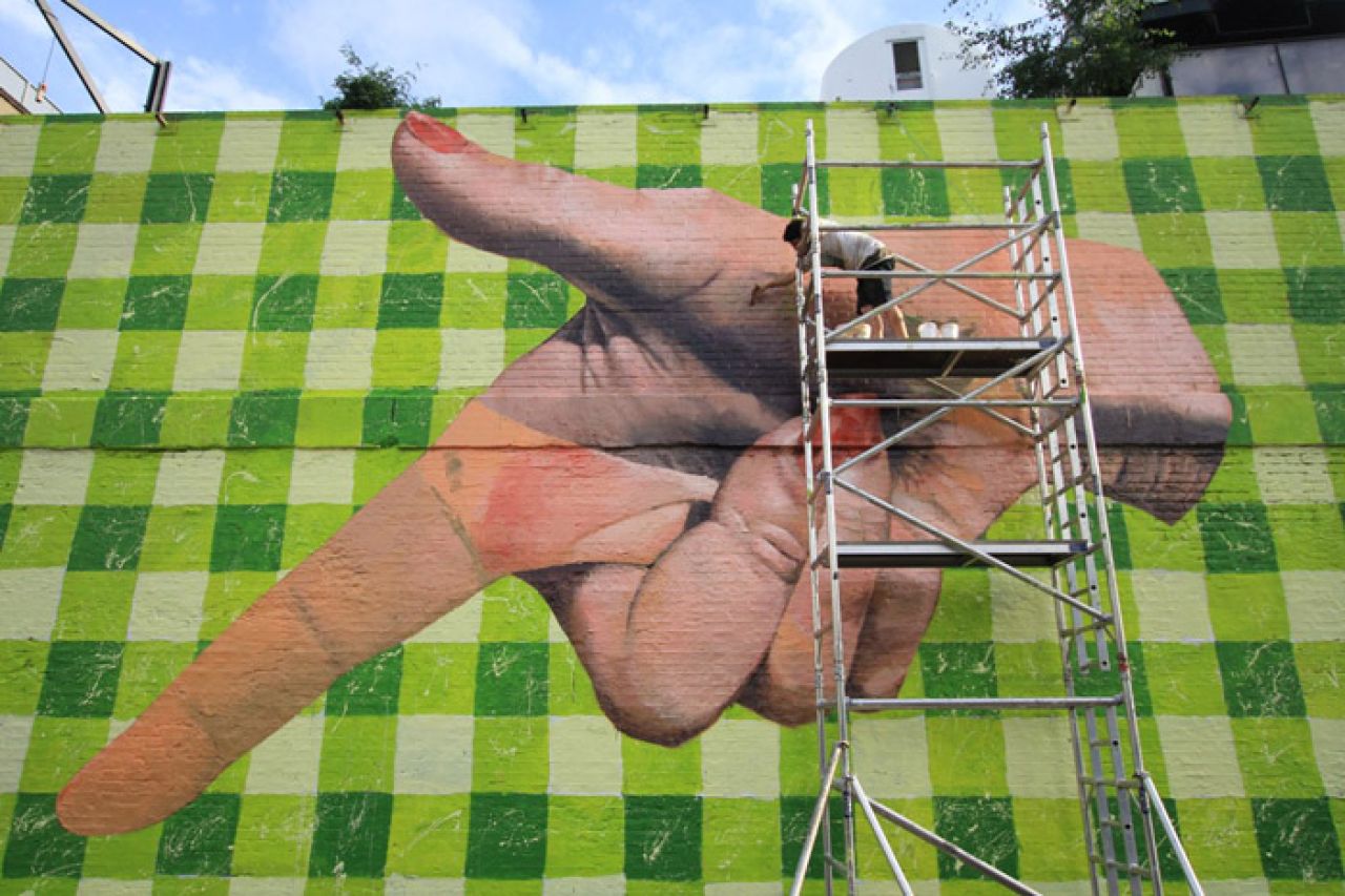 Originally from Buenos Aires, he has been painting for more than 10 years and is known for his giant 3D surreal murals, using the technique of hyper-realism so that the bizarre situations he paints seem to happen in real life.