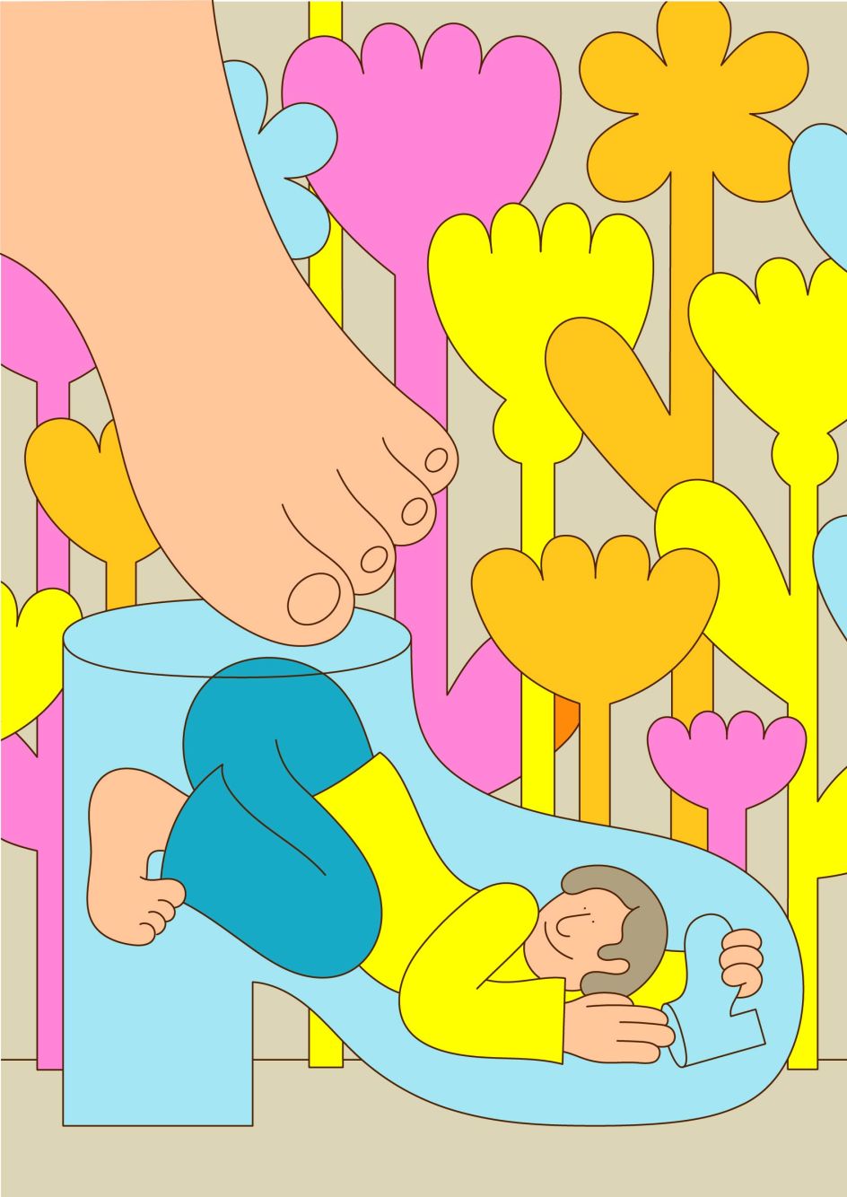 "I'd describe my style as flat, awkward and geometric. And with loads of colours," Paukova tells Creative Boom. "I've been drawn to depicting very daily, mundane scenes with a little story locked within since the very beginning. You would see this character or a bunch of them, going about their day, being glued to the computer or the phone and in constant awe of the world around them. It's me in a nutshell, multiplied."