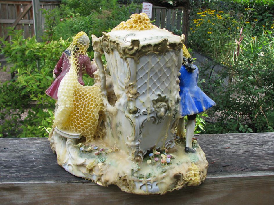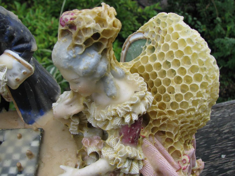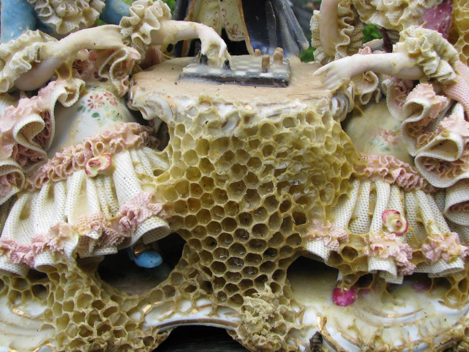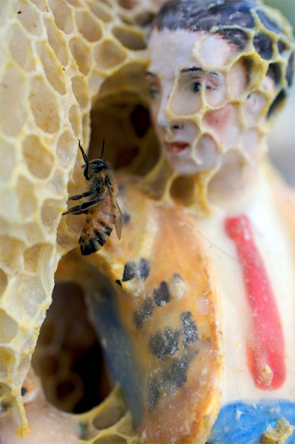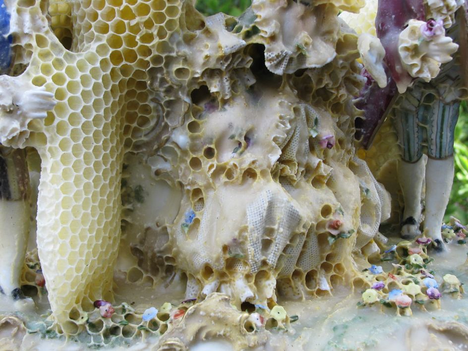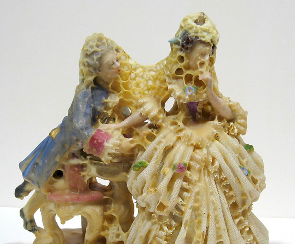 In her series The Masked Ball, Canadian artist Aganetha Dyck takes broken porcelain sculptures of 17th century characters and fixes them by collaborating with bees – yes, bees – to coat them in a protective layer of honeycomb.