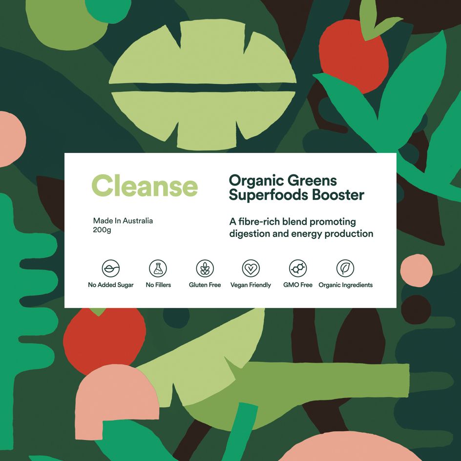 Mabel & Joy's boosters are all made in Australia from only organic ingredients. Different designs and colour palettes are used across each flavour in the range—Balance, Cleanse and Restore. "The main ingredients were incorporated into the illustrations and the bold colours align with each of the flavours," Jo Cutri, the studio's founder explains.