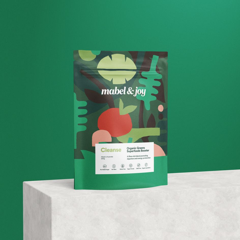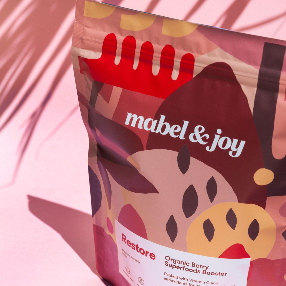 Jo Cutri Studio's new work for Mabel & Joy owes a thing or two to cut-out maestro Matisse, but brings modernity and playfulness to the range of Organic Superfood Boosters.