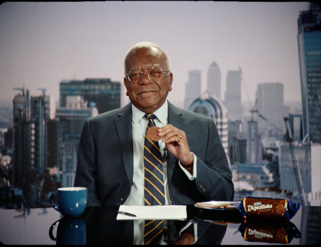 Viewers then see a Sir Trevor impersonator in a cramped voiceover studio and realise it was a fake all along – until the camera pans to a flashy news studio where the true original news reader is holding a genuine McVitie's biscuit. "Actually, it's Sir Trevor McDonald, and I'll take it from here," he says.