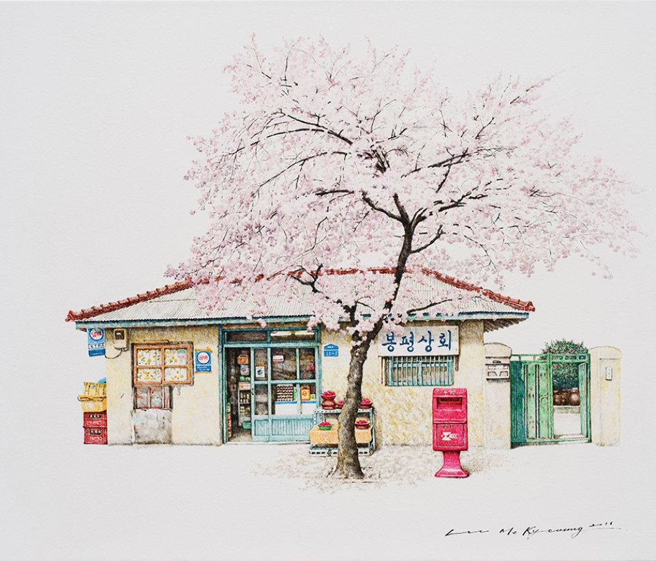 You'd think a typical convenience store wouldn't even inspire the greatest artist on the planet, but for South Korean Me Kyeoung Lee, she sees a beauty in their mundane and functional form, creating charming paintings of those she discovers on her travels around her home country.